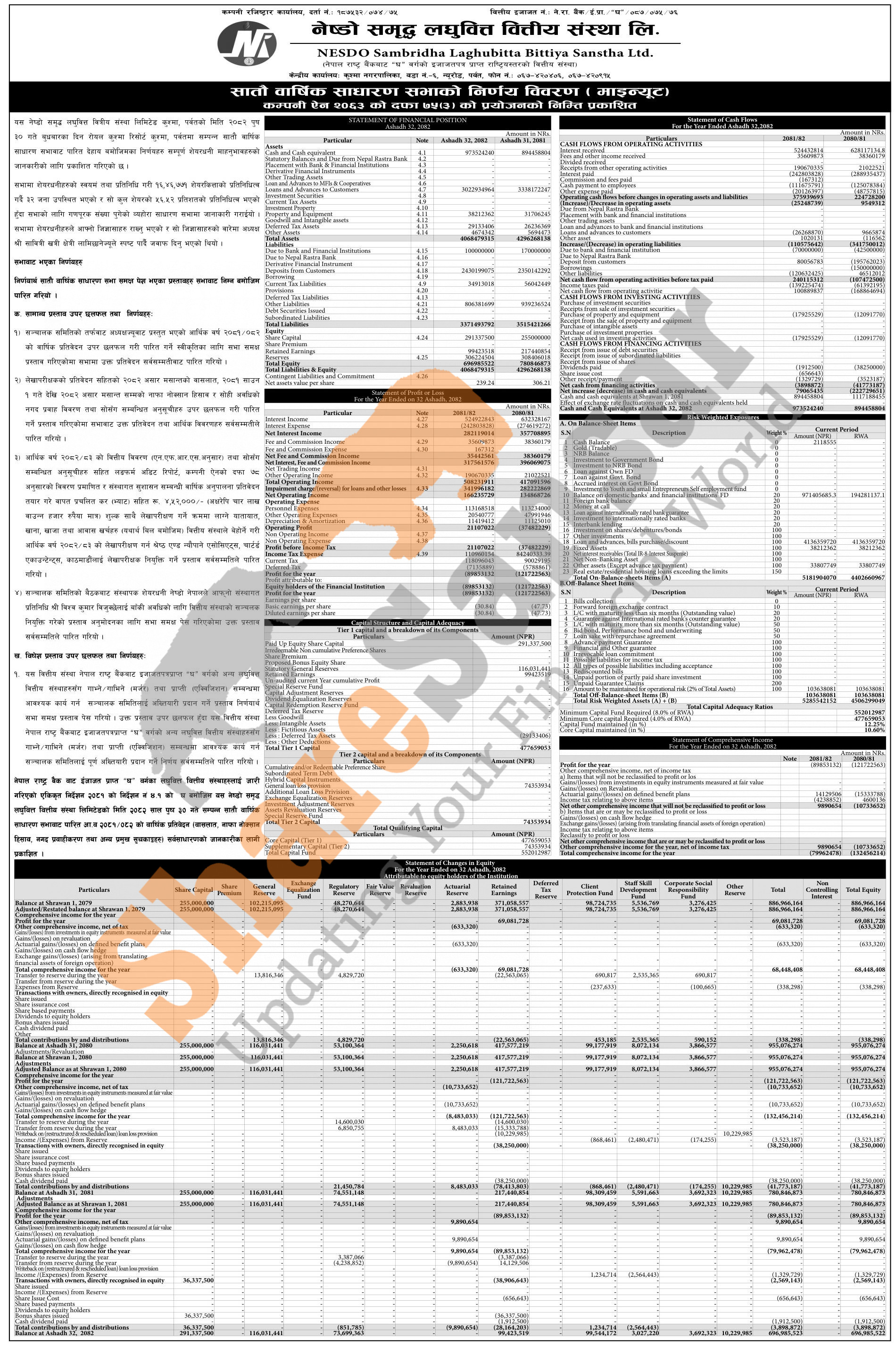 Nesdo Sambridha Laghubitta Bittiya Sanstha Limited has published the minutes of its 7th AGM and published its annual financial statement of the fiscal year 2081/82.