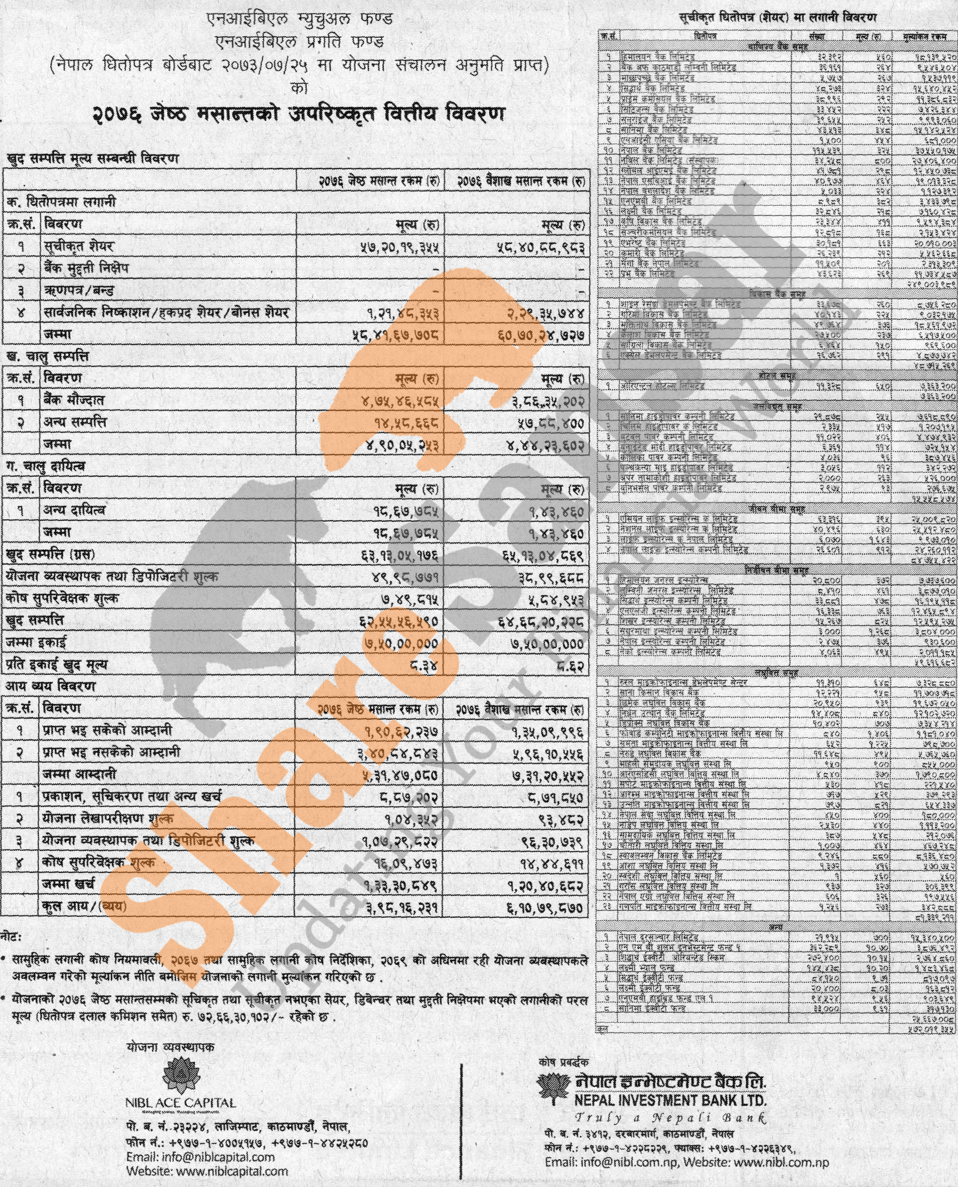 NIBL Ace Capital Limited has published “NIBL Pragati Fund” Net Assets Value (NAV) till Jestha, 2076.