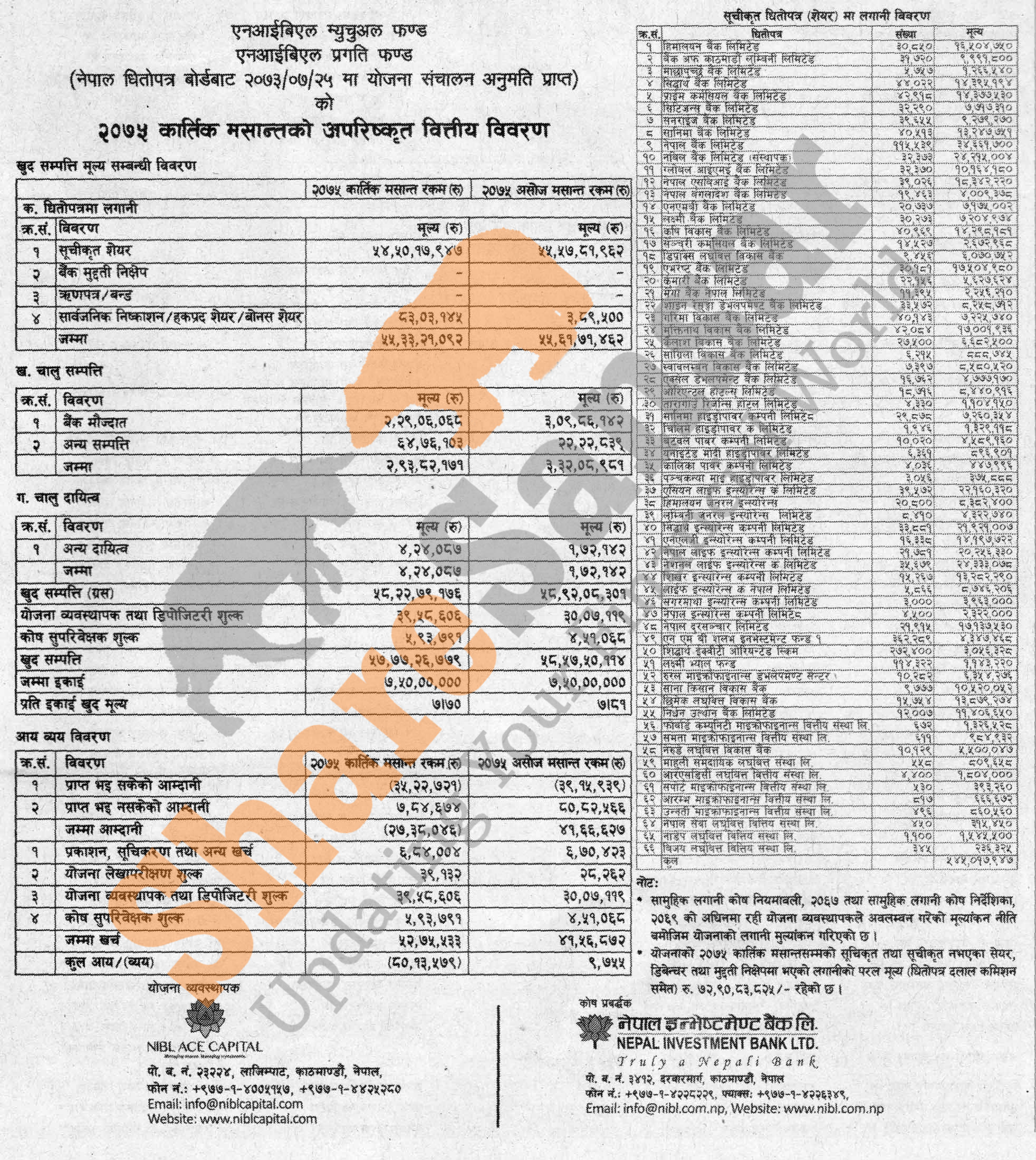 NIBL Ace Capital Limited has published “NIBL Pragati Fund” Net Assets Value (NAV) till Kartik, 2075.
