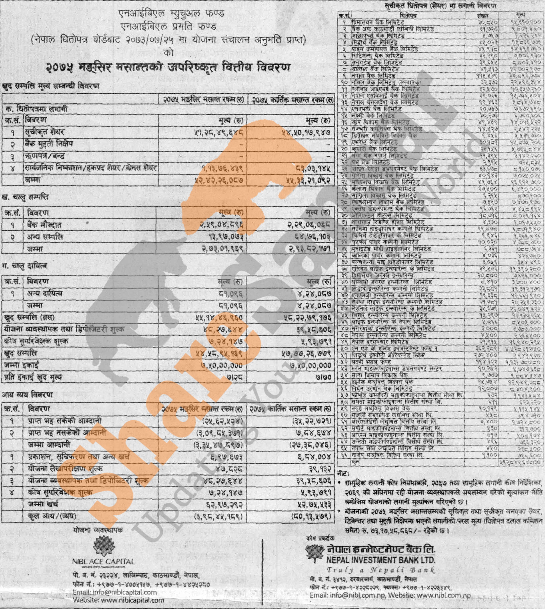 NIBL Ace Capital Limited has published “NIBL Pragati Fund” Net Assets Value (NAV) till Mangsir, 2075.