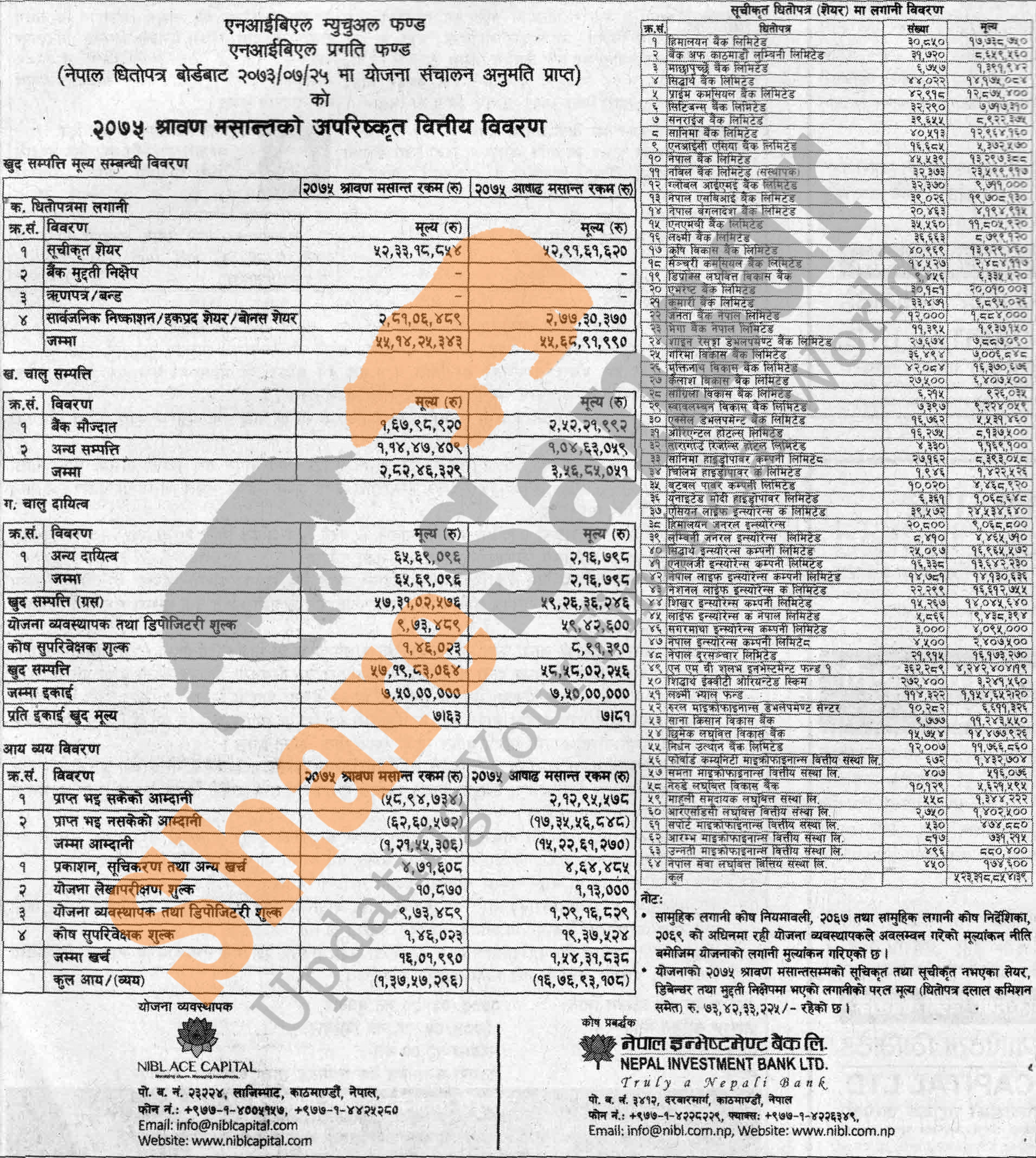 NIBL Ace Capital Limited has published “NIBL Pragati Fund” Net Assets Value (NAV) till Shrawan, 2075.