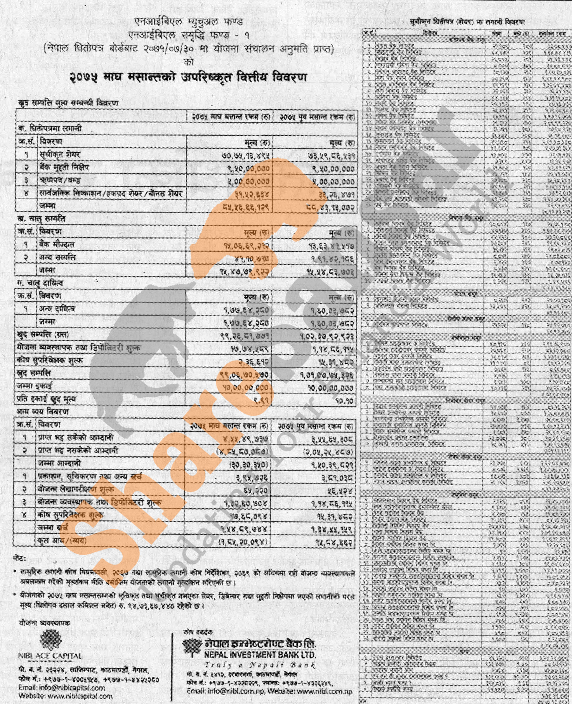 NIBL Ace Capital Limited has published “NIBL Samriddhi Fund-1” Net Assets Value (NAV) till Magh, 2075.