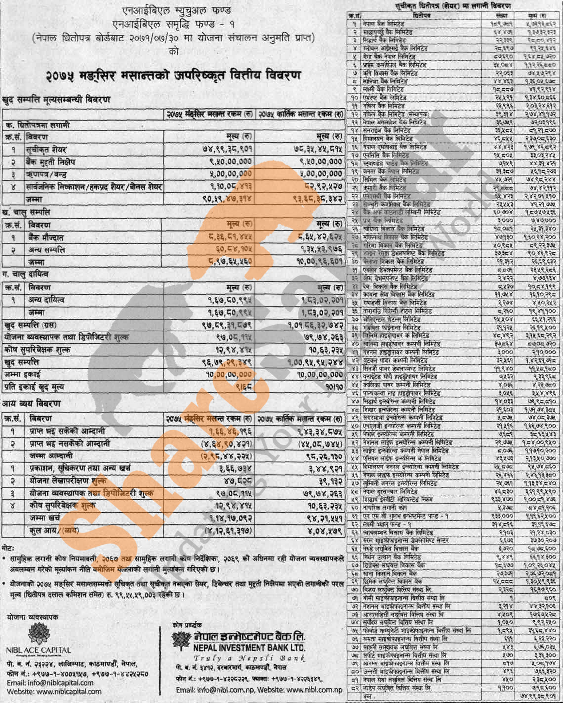 NIBL Ace Capital Limited has published “NIBL Samriddhi Fund-1” Net Assets Value (NAV) till Mangsir, 2075.
