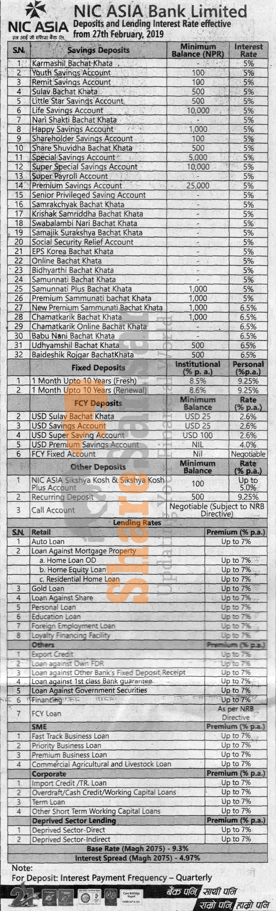 NIC Asia Bank Limited has published a notice regarding new interest rate and its effective from 15th Falgun, 2075.
