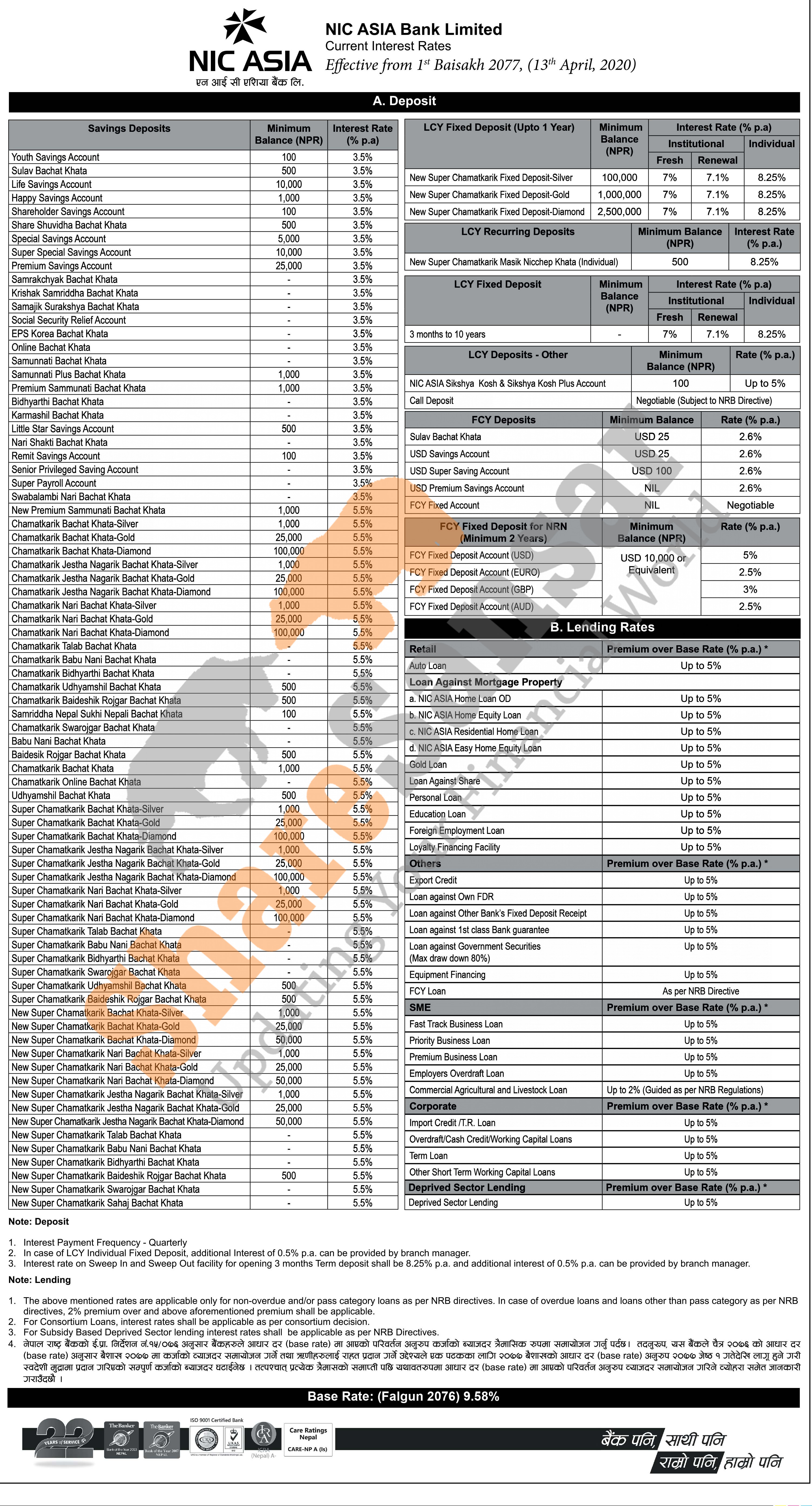 NIC Asia Bank Limited has published a notice regarding new interest rate and its effective from 1st Baishakh, 2077.
