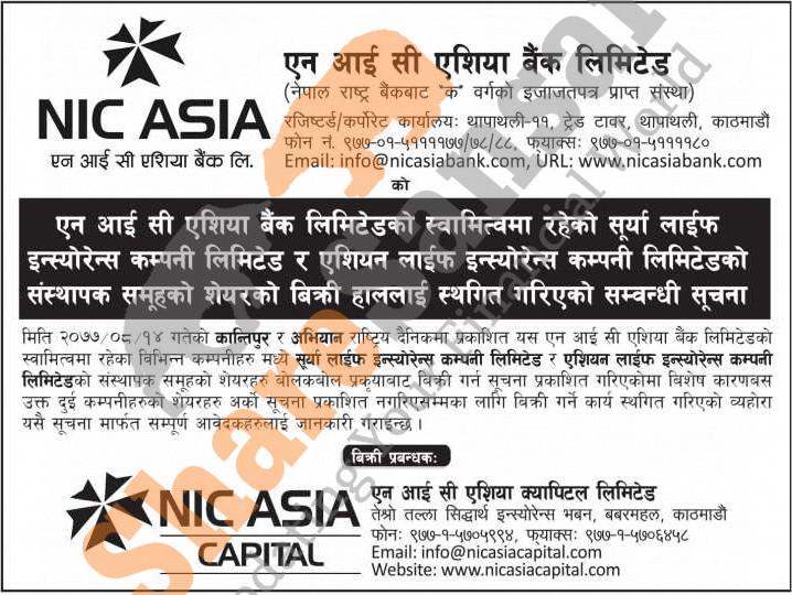 NIC Asia Bank Limited has published a notice regarding the postponement of its auction.
