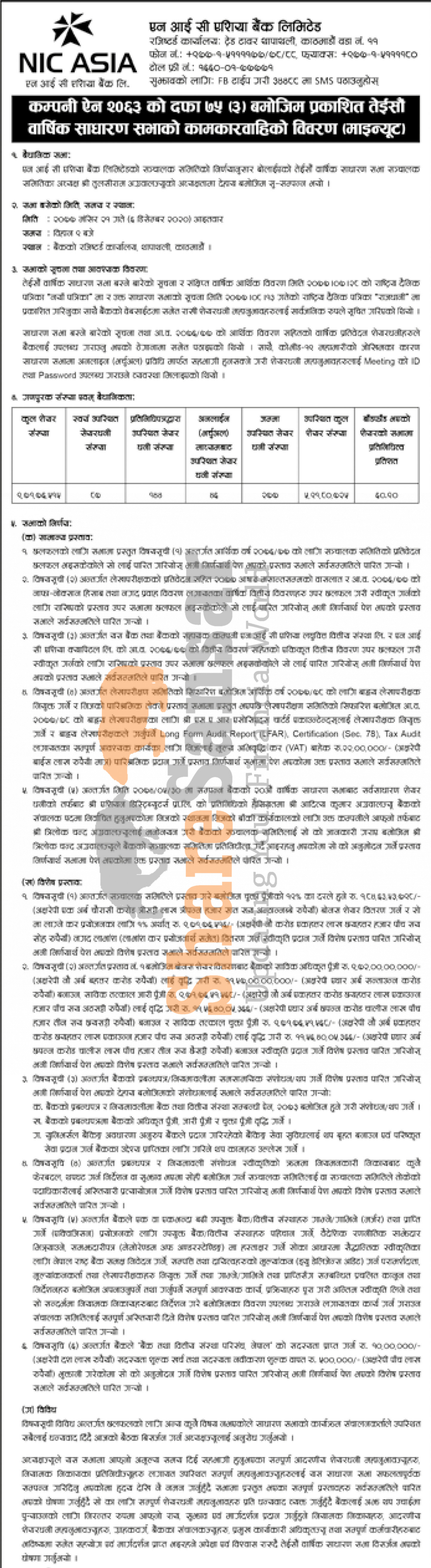 NIC Asia Bank Limited has published its 23rd AGM minute.