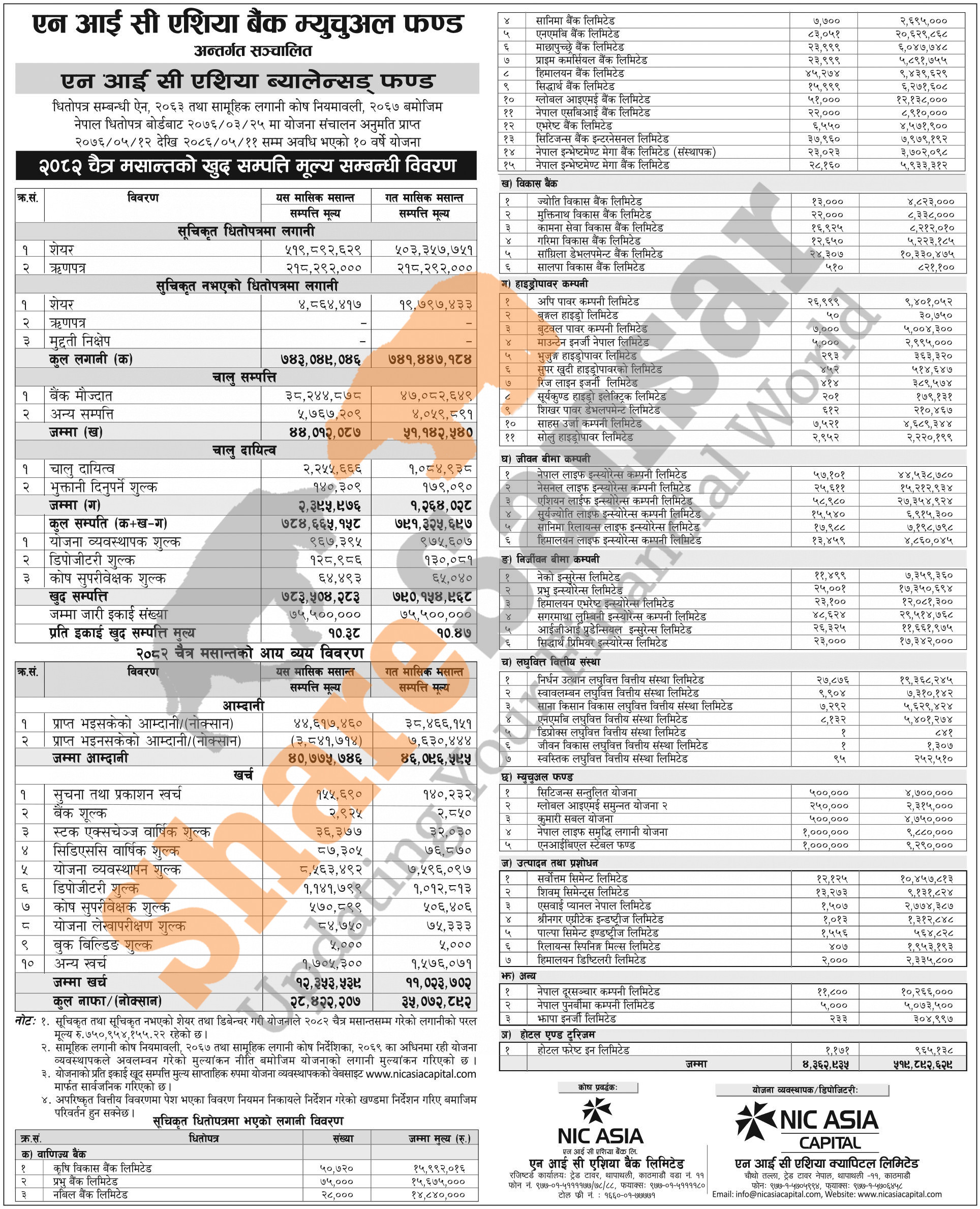 NIC Asia Capital Limited has published "NIC Asia Balanced Fund" Net Assets Value (NAV) till Chaitra, 2082.
