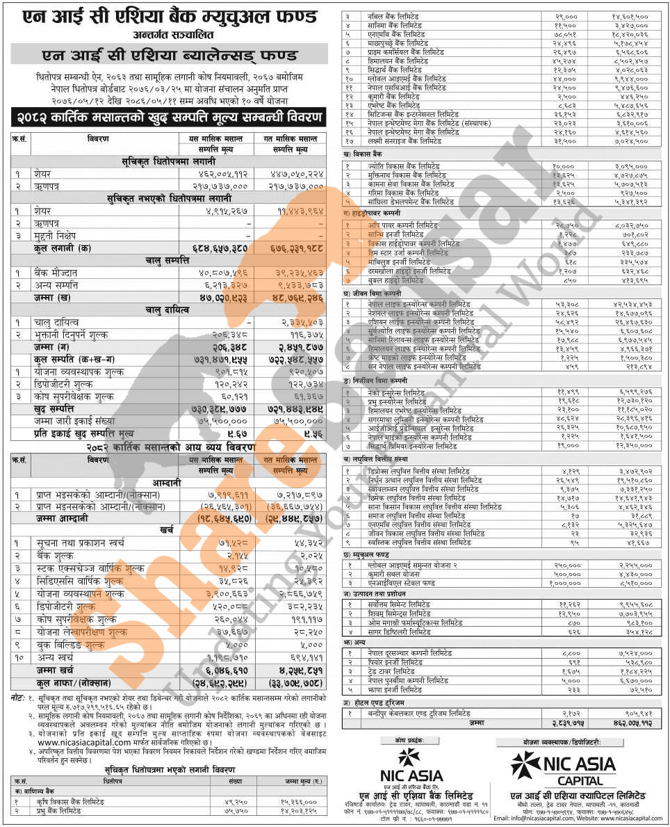 NIC Asia Capital Limited has published "NIC Asia Balanced Fund" Net Assets Value (NAV) till Kartik, 2082.