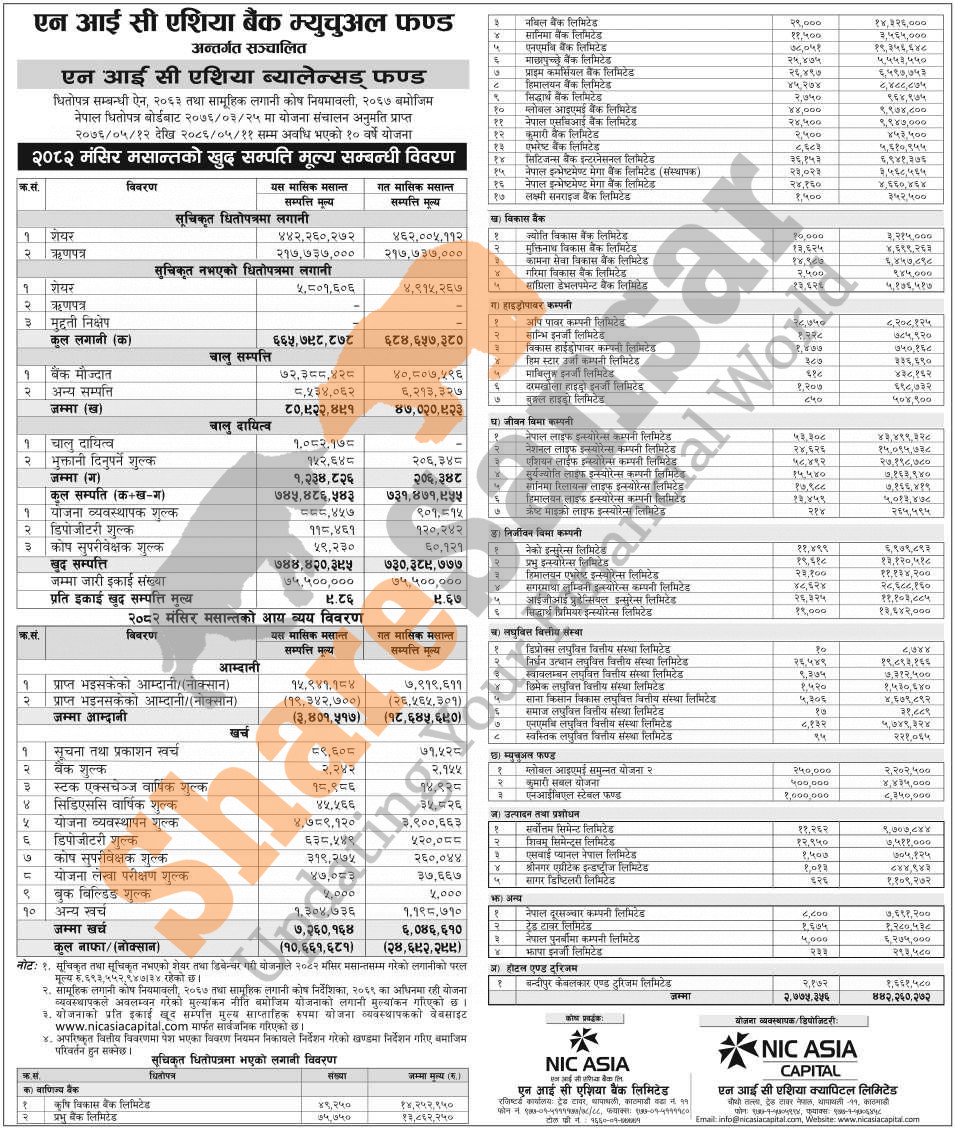NIC Asia Capital Limited has published "NIC Asia Balanced Fund" Net Assets Value (NAV) till Mangsir, 2082.