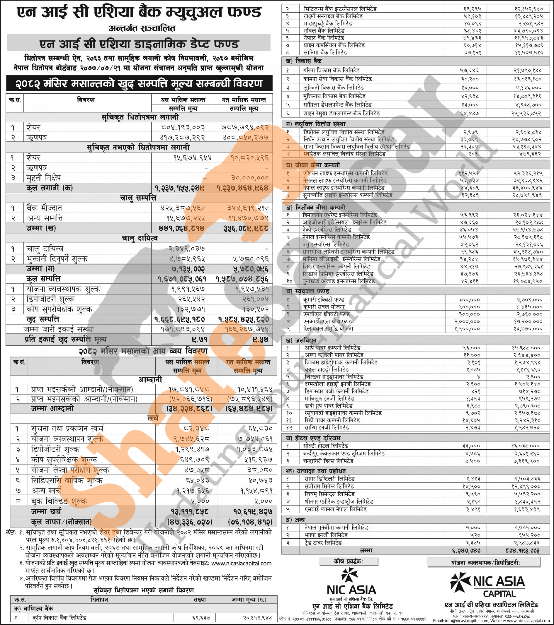 NIC Asia Capital Limited has published "NIC Asia Dynamic Debt Fund" Net Assets Value (NAV) till Mangsir, 2082.