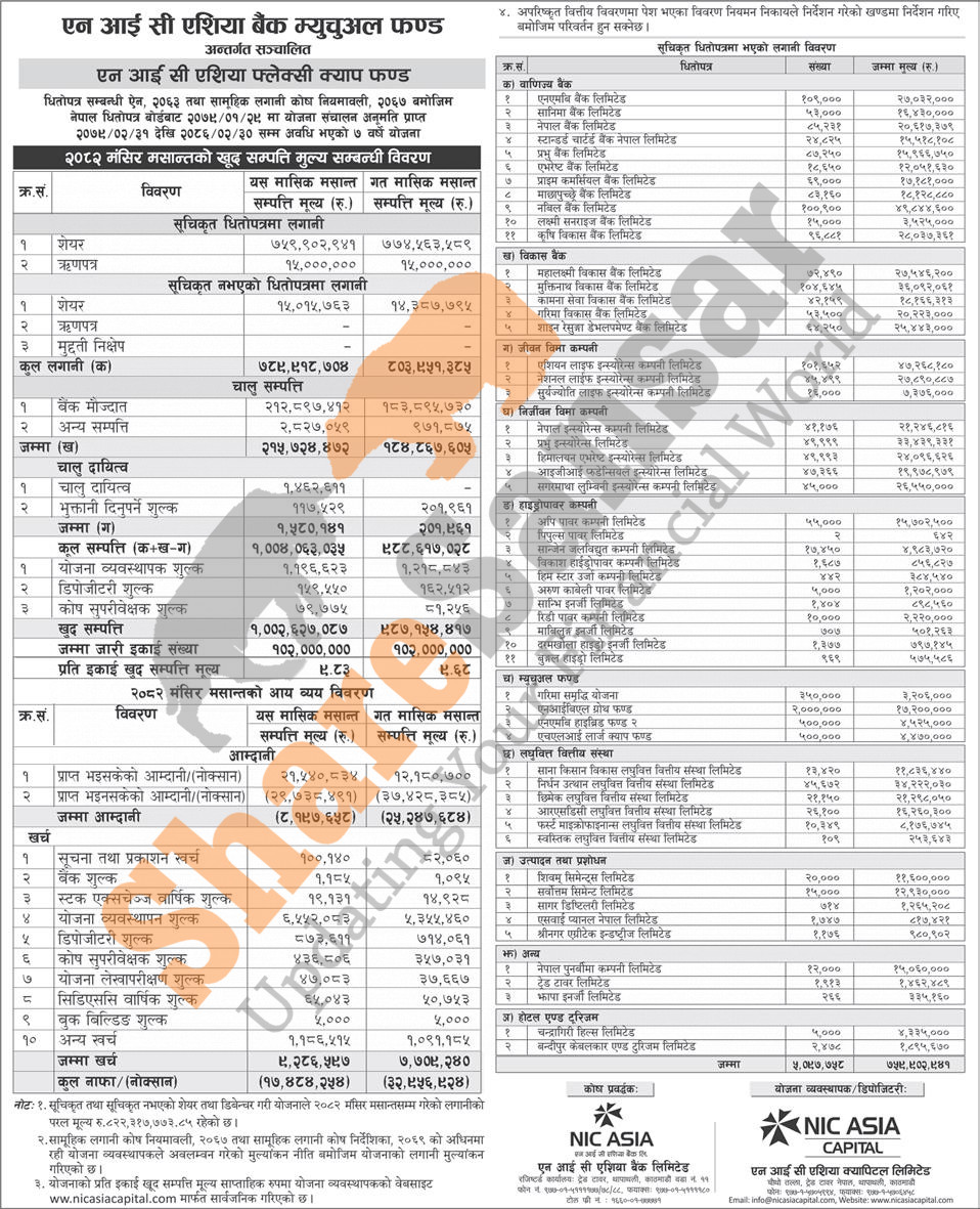 NIC Asia Capital Limited has published "NIC Asia Flexi Cap Fund" Net Assets Value (NAV) till Mangsir, 2082.