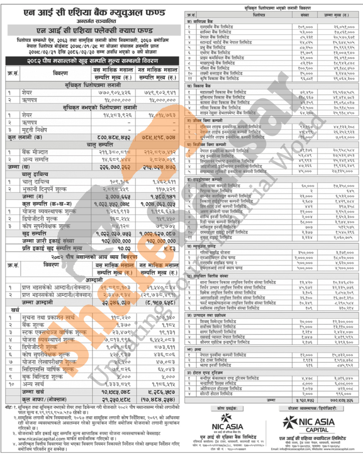NIC Asia Capital Limited has published "NIC Asia Flexi Cap Fund" Net Assets Value (NAV) till Poush, 2082.
