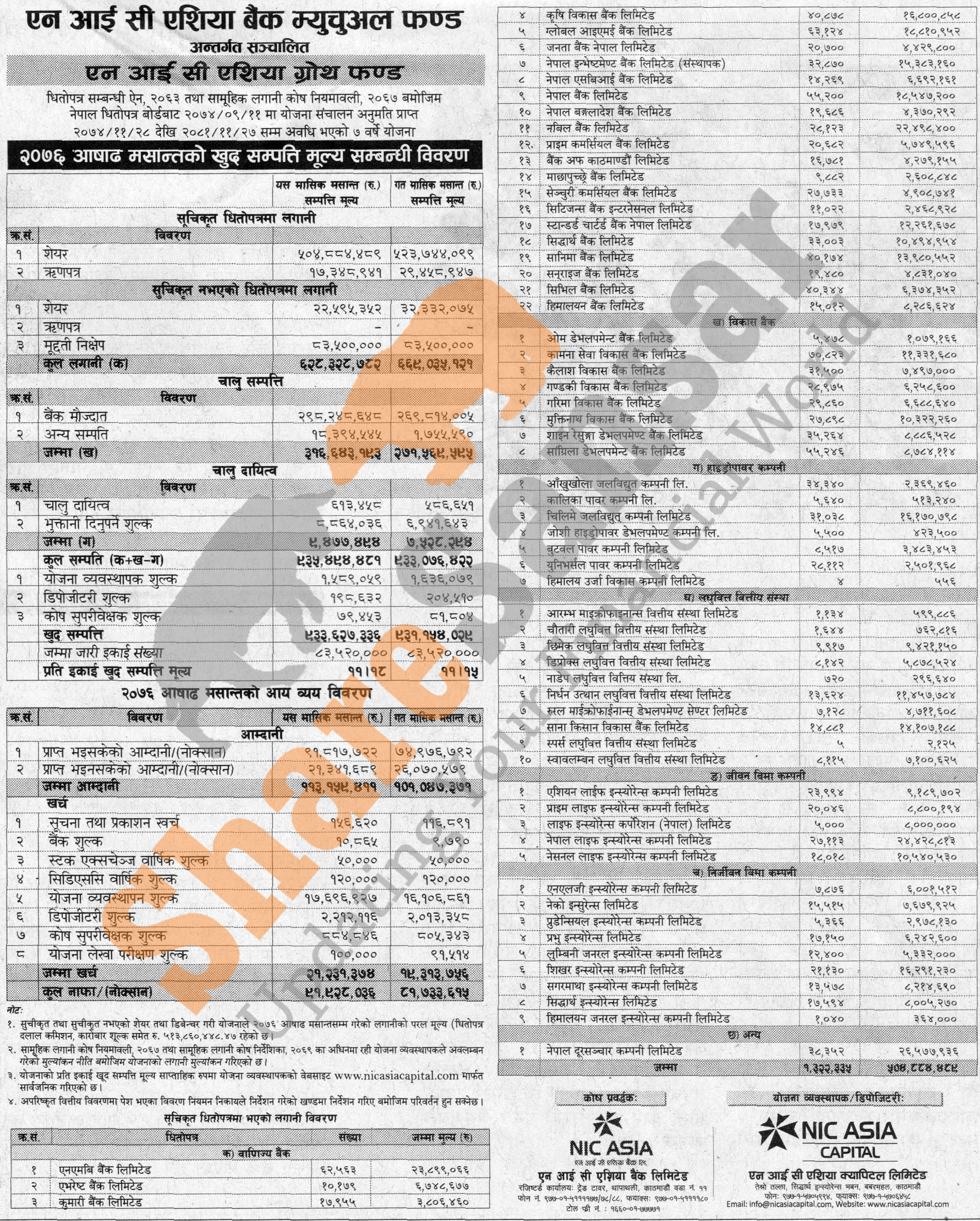 NIC Asia Capital Limited has published (NIC Asia Growth Fund) Net Assets Value (NAV) till Ashad, 2076.