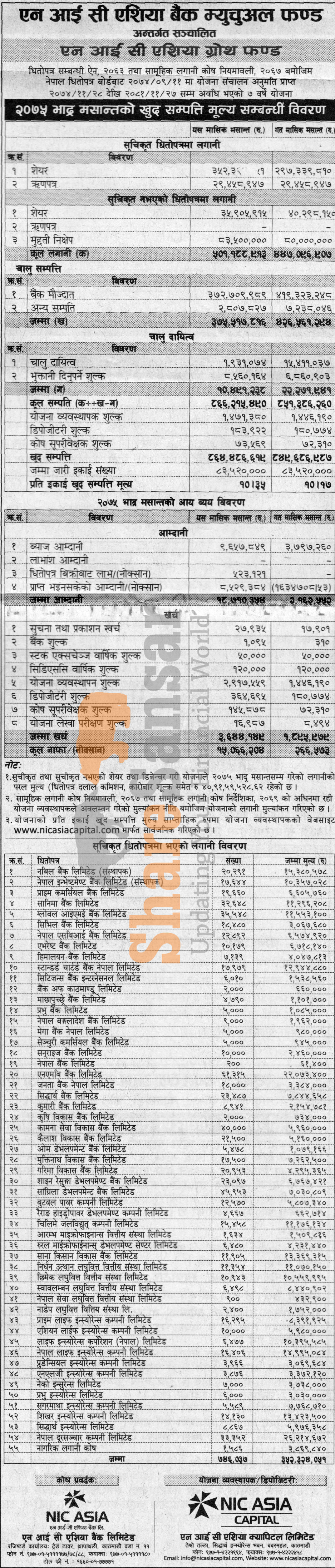 NIC Asia Capital Limited has published (NIC Asia Growth Fund) Net Assets Value (NAV) till Bhadra, 2075.