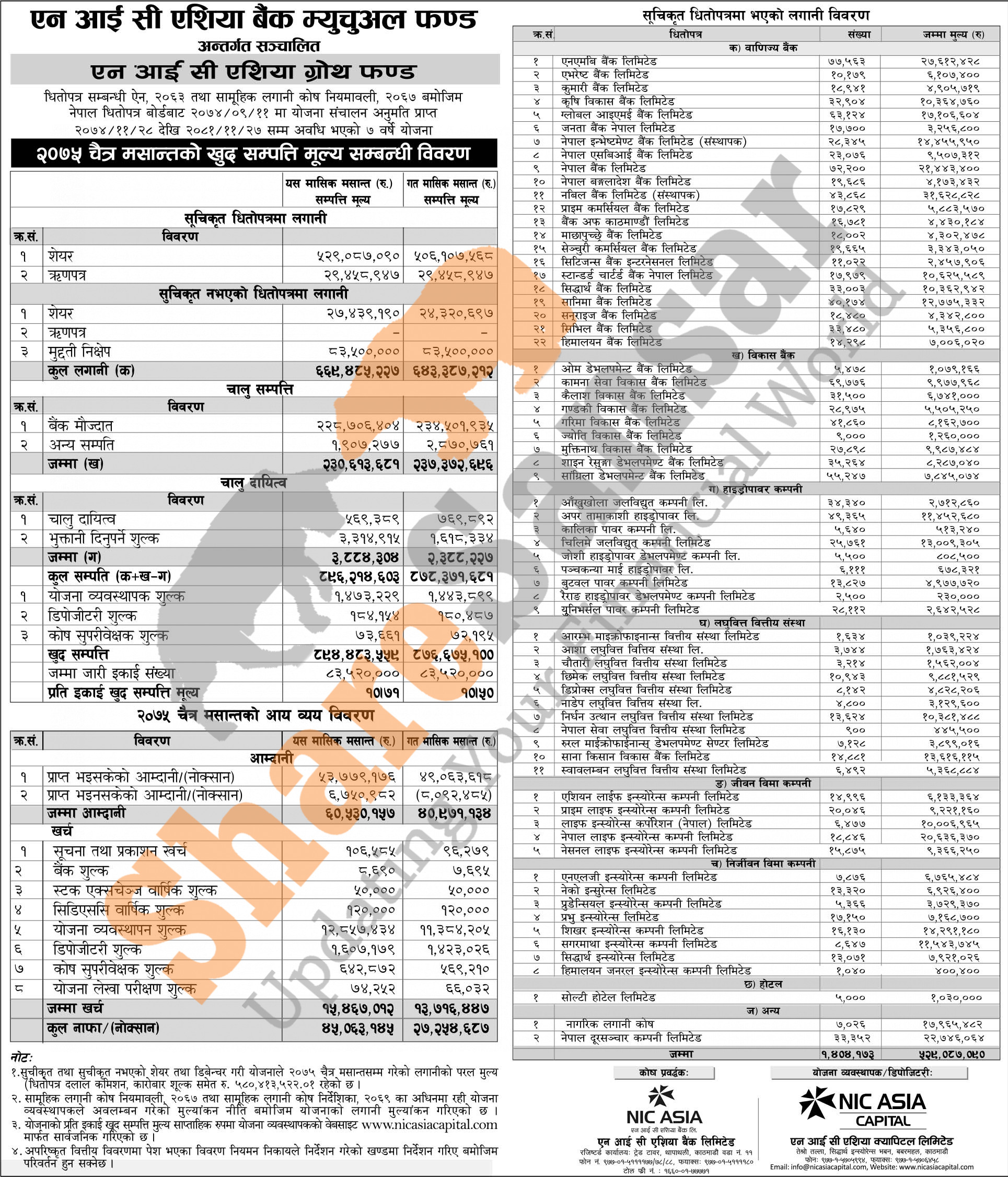 NIC Asia Capital Limited has published (NIC Asia Growth Fund) Net Assets Value (NAV) till Chaitra, 2075.