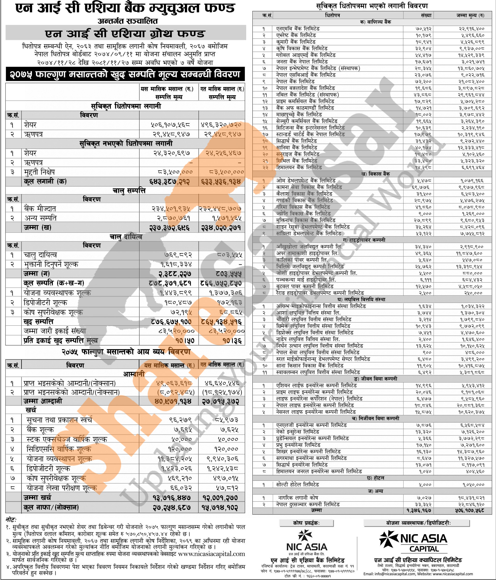 NIC Asia Capital Limited has published (NIC Asia Growth Fund) Net Assets Value (NAV) till Falgun, 2075.