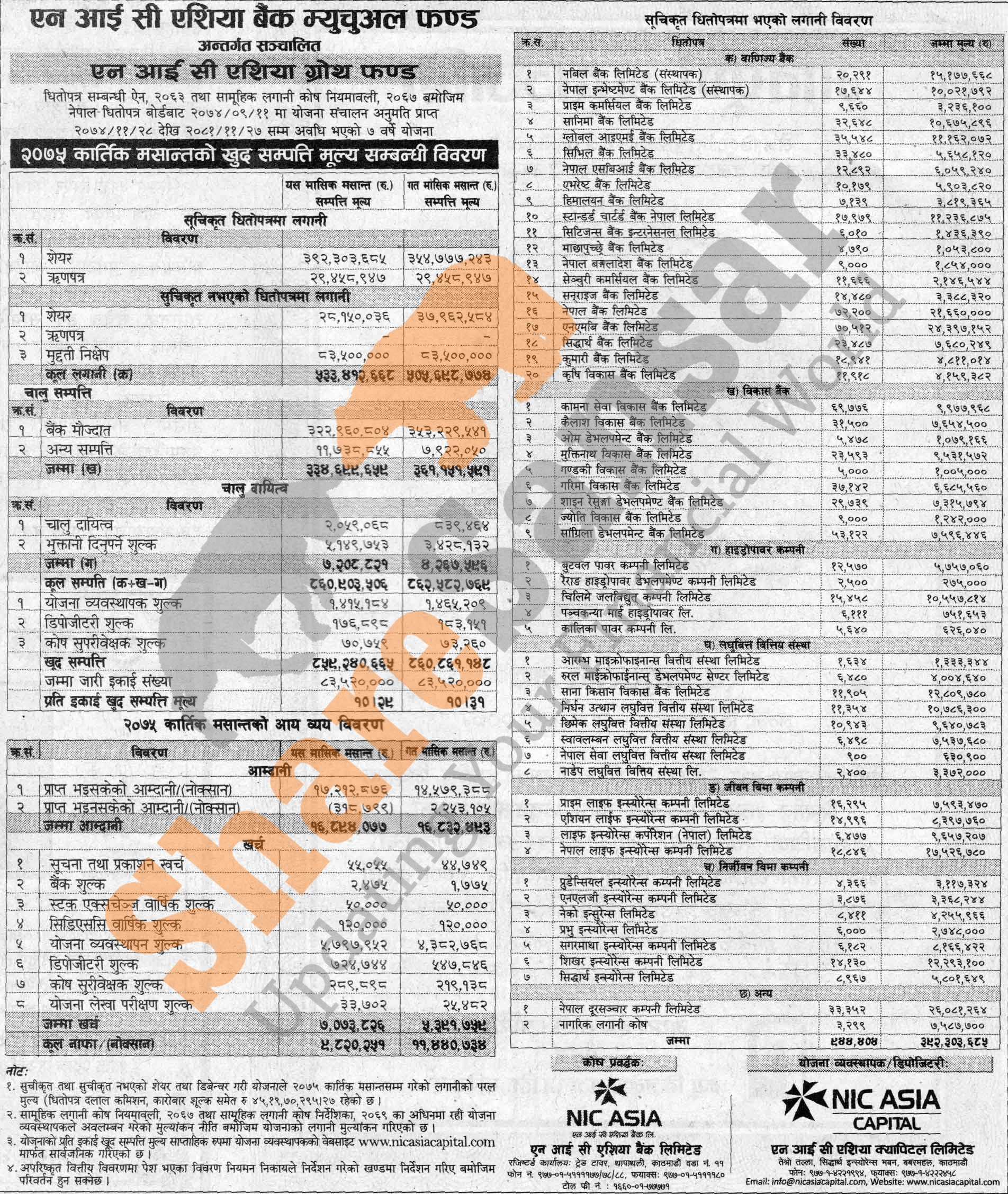 NIC Asia Capital Limited has published (NIC Asia Growth Fund) Net Assets Value (NAV) till Kartik, 2075.