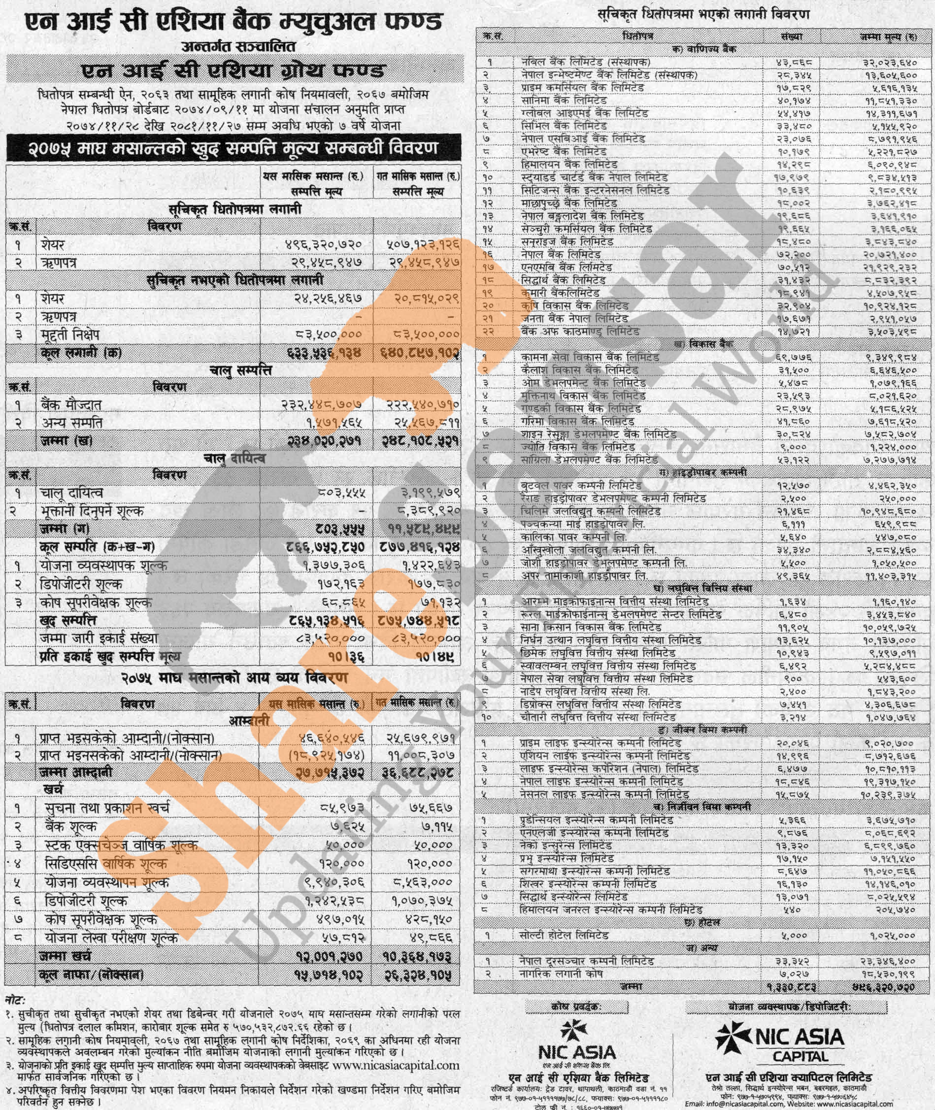 NIC Asia Capital Limited has published (NIC Asia Growth Fund) Net Assets Value (NAV) till Magh, 2075.