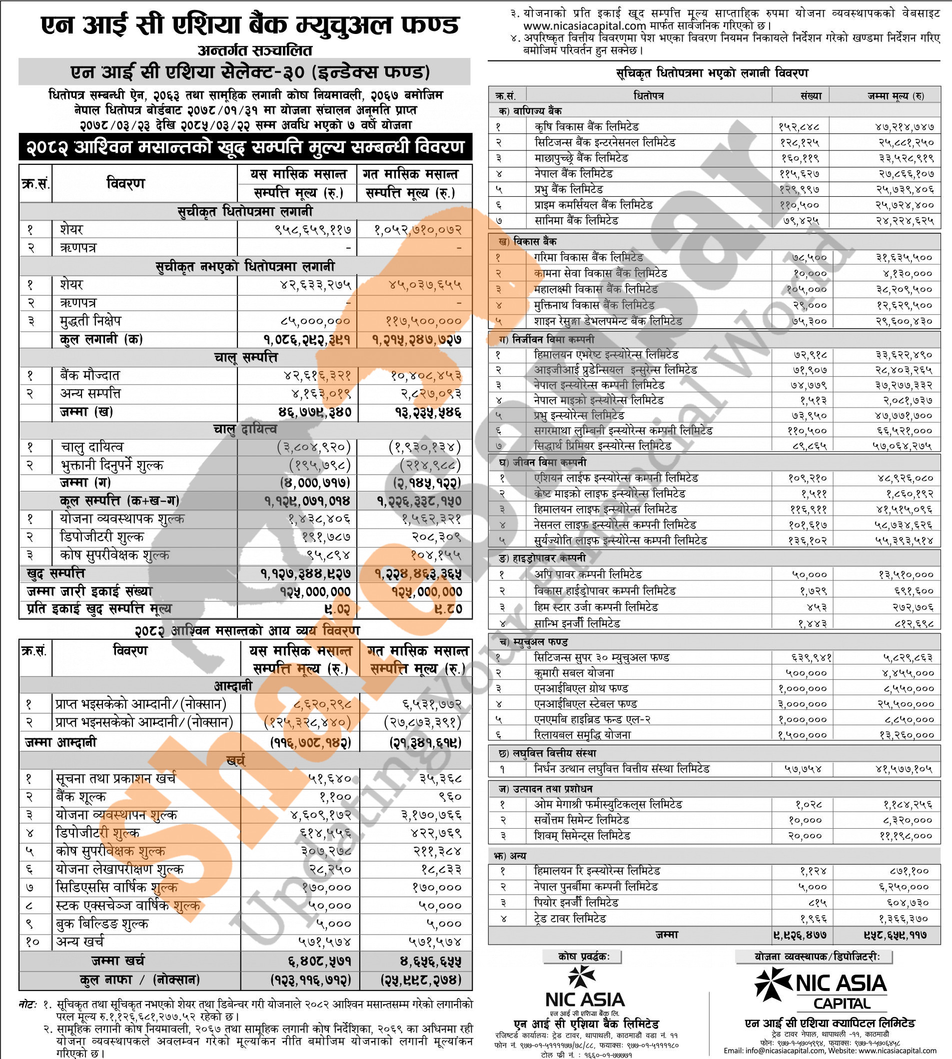 NIC Asia Capital Limited has published "NIC Asia Select-30 (Index Fund)" Net Assets Value (NAV) till Ashwin, 2082.