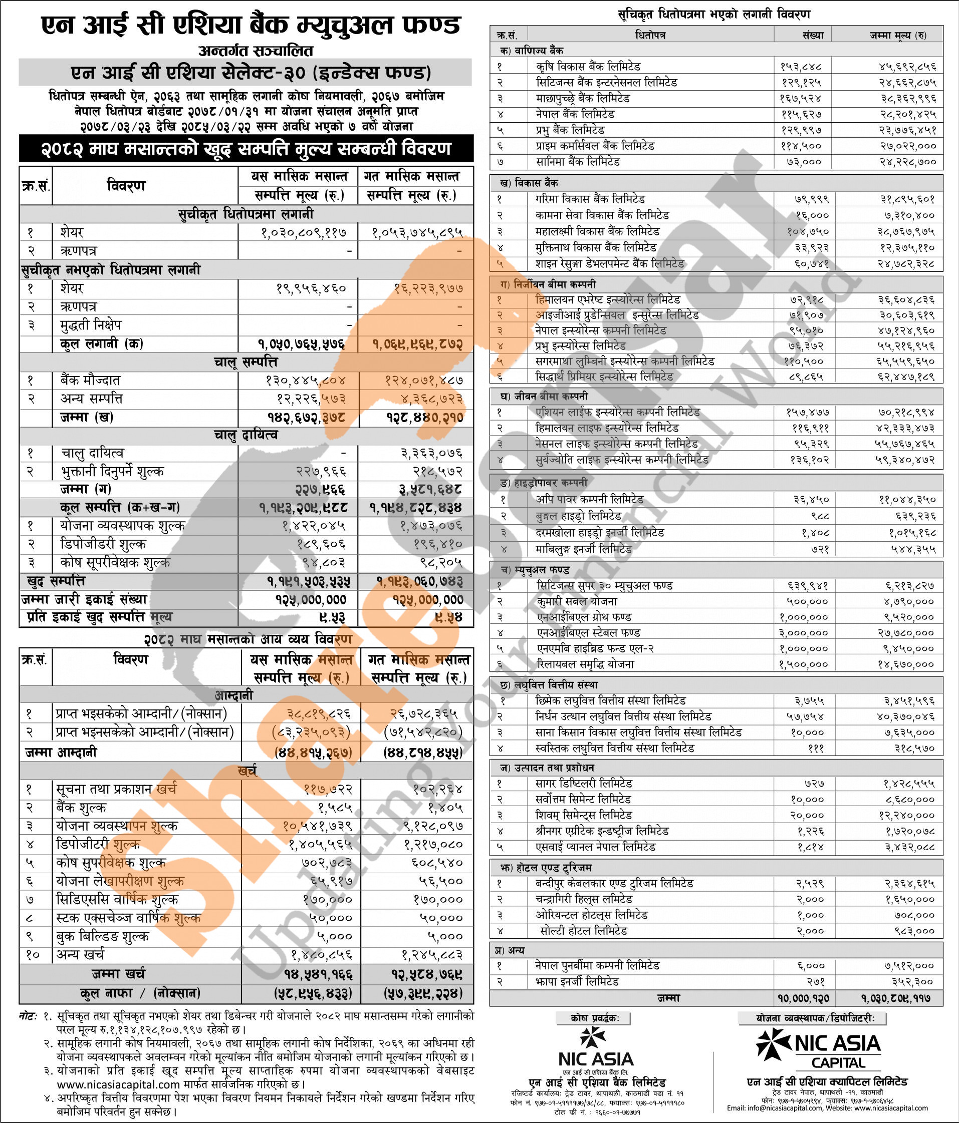 NIC Asia Capital Limited has published "NIC Asia Select-30 (Index Fund)" Net Assets Value (NAV) till Magh, 2082.
