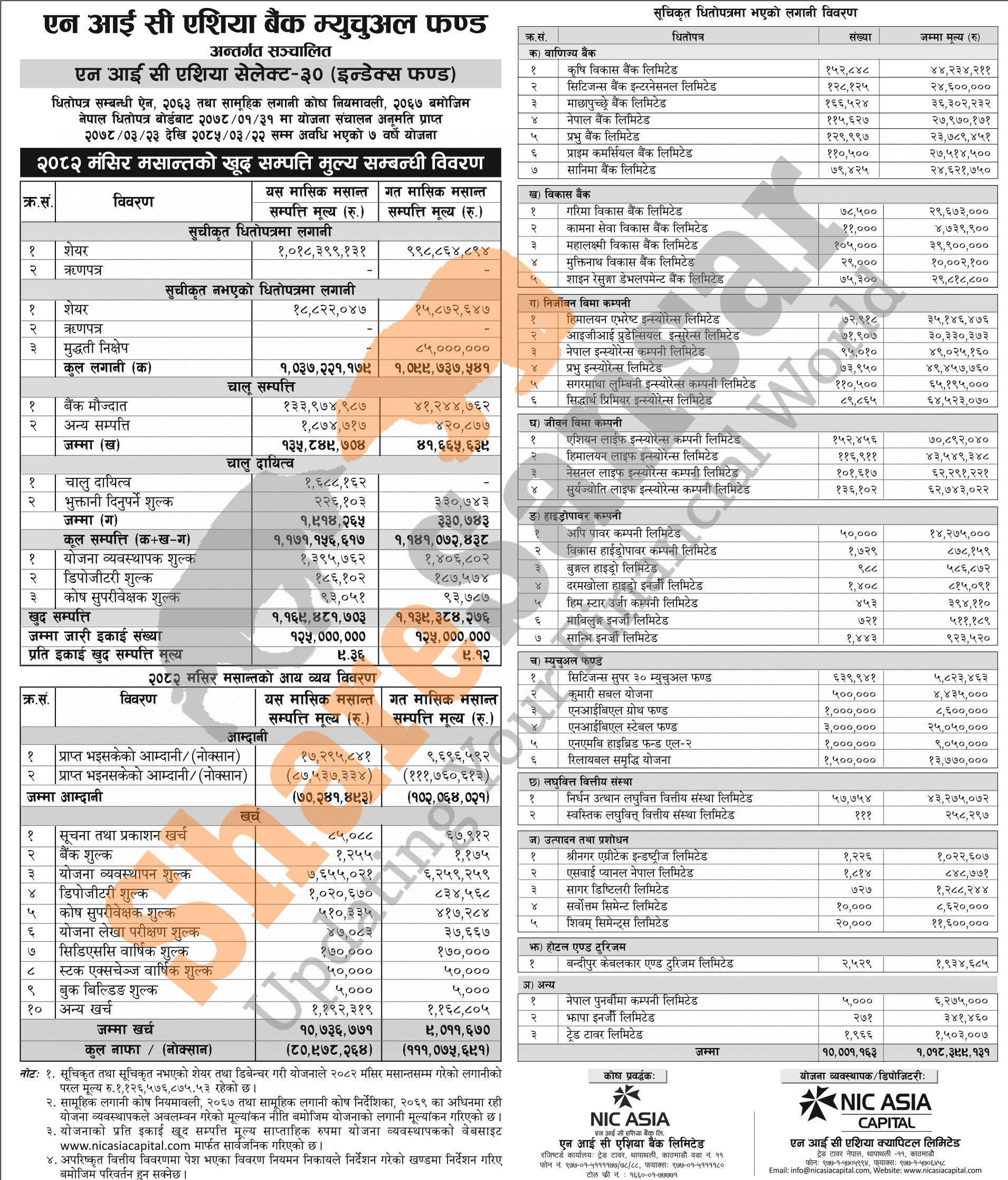 NIC Asia Capital Limited has published "NIC Asia Select-30 (Index Fund)" Net Assets Value (NAV) till Mangsir, 2082.