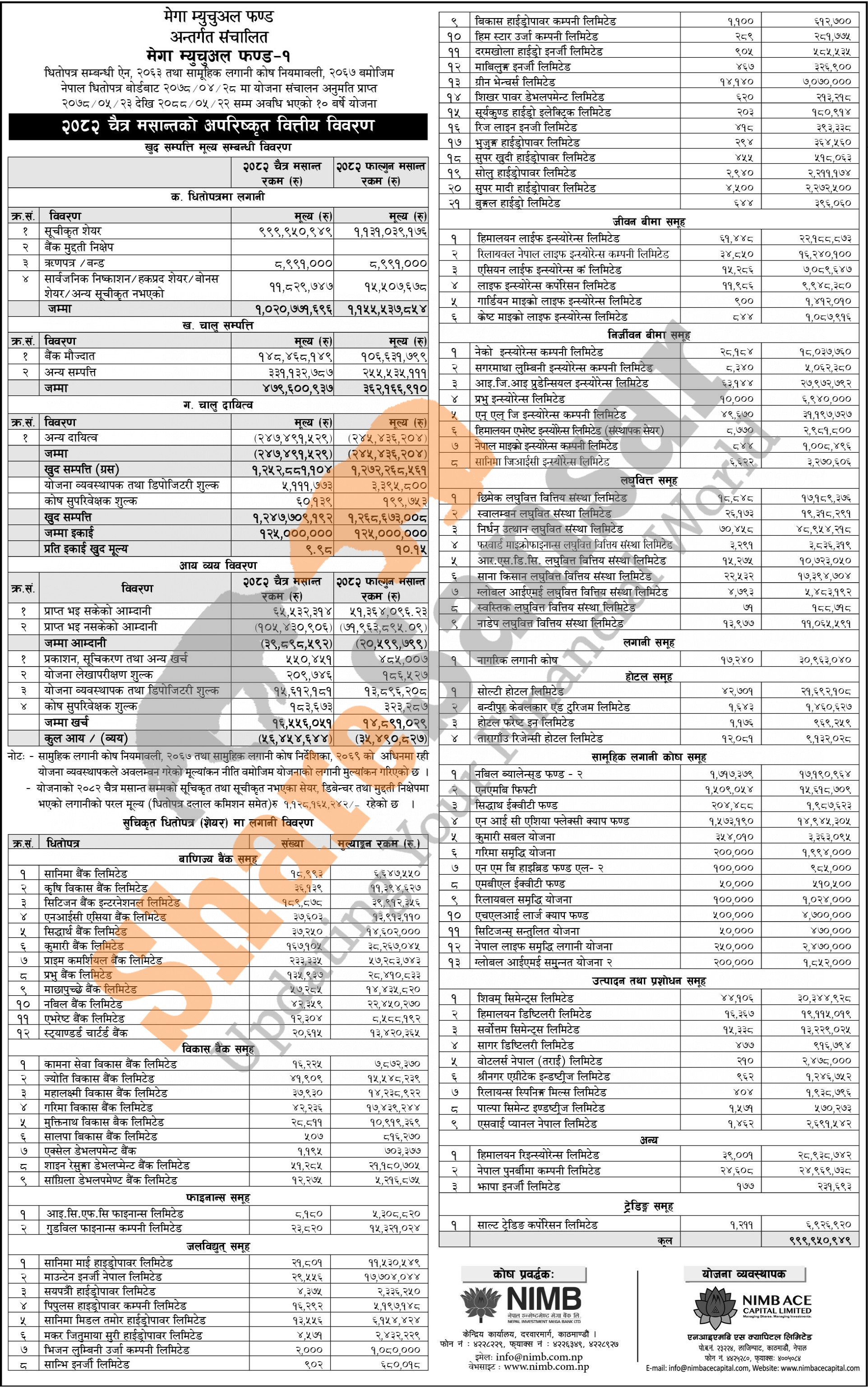 NIMB Ace Capital Limited has published "Mega Mutual Fund-1" Net Assets Value (NAV) till Chaitra, 2082.