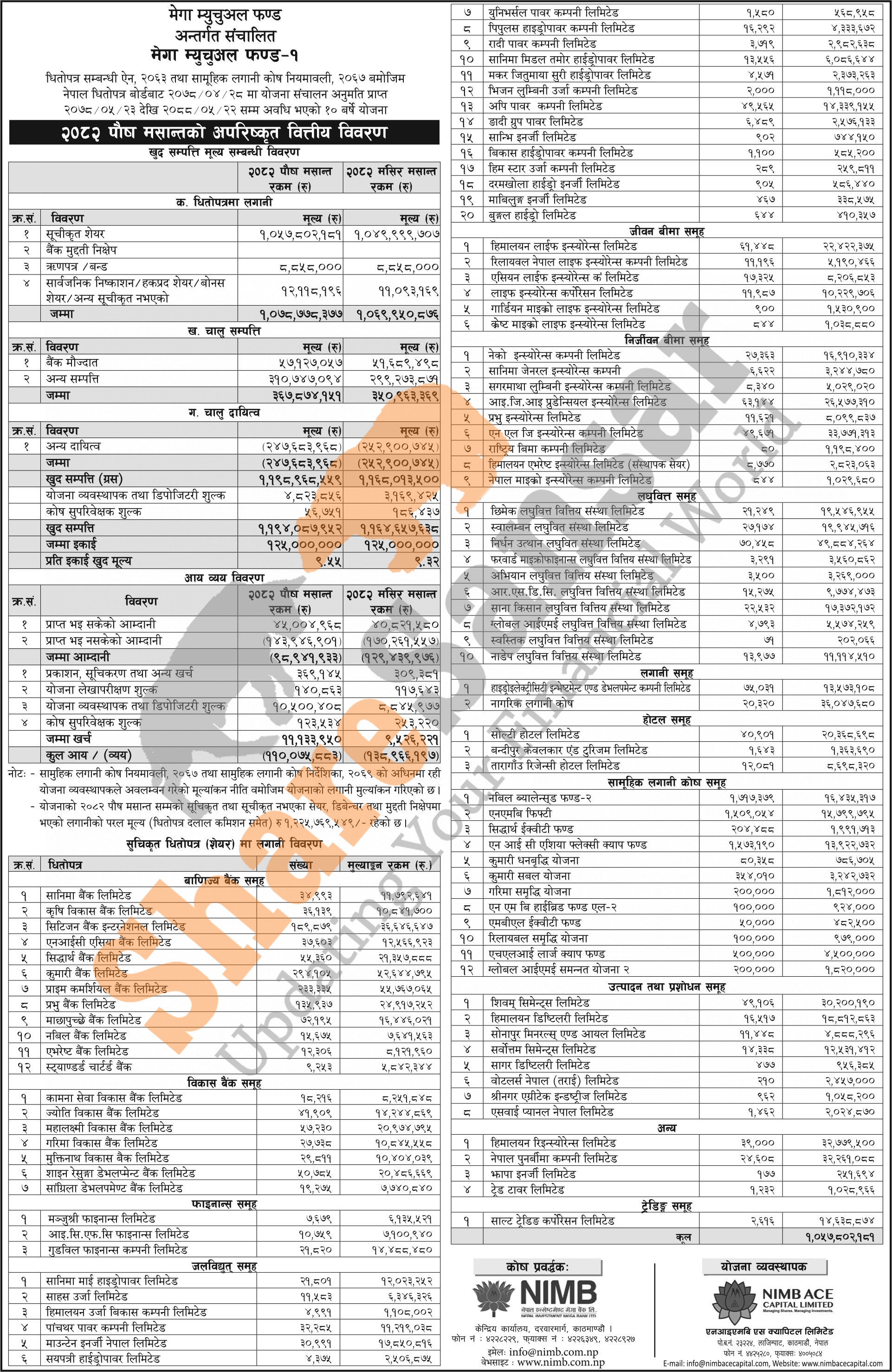 NIMB Ace Capital Limited has published "Mega Mutual Fund-1" Net Assets Value (NAV) till Poush, 2082.