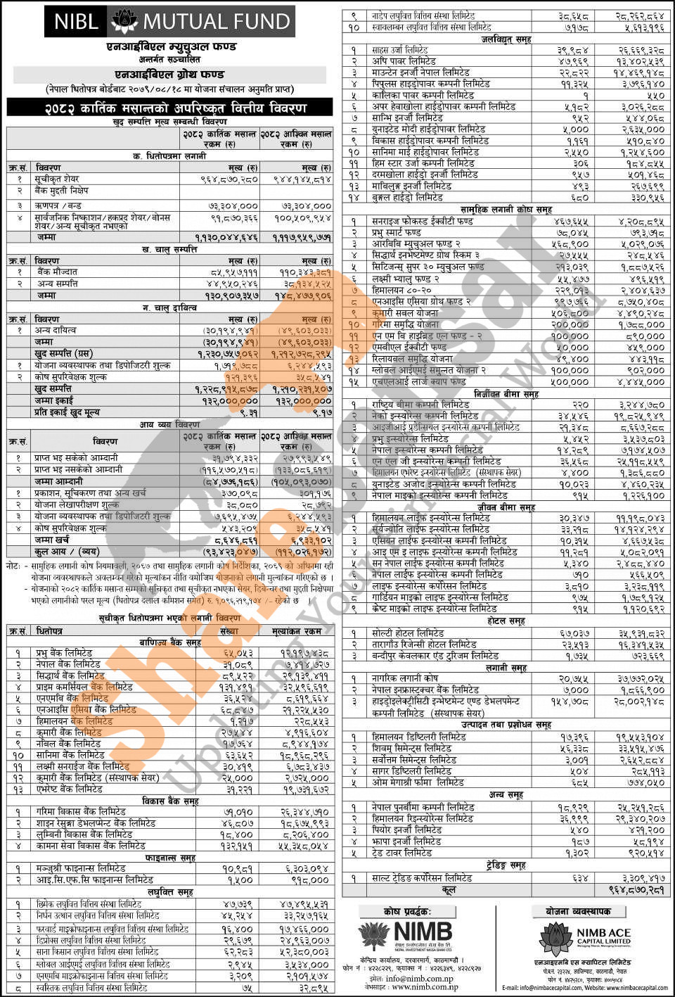NIMB Ace Capital Limited has published “NIBL Growth Fund” Net Assets Value (NAV) till Kartik, 2082.