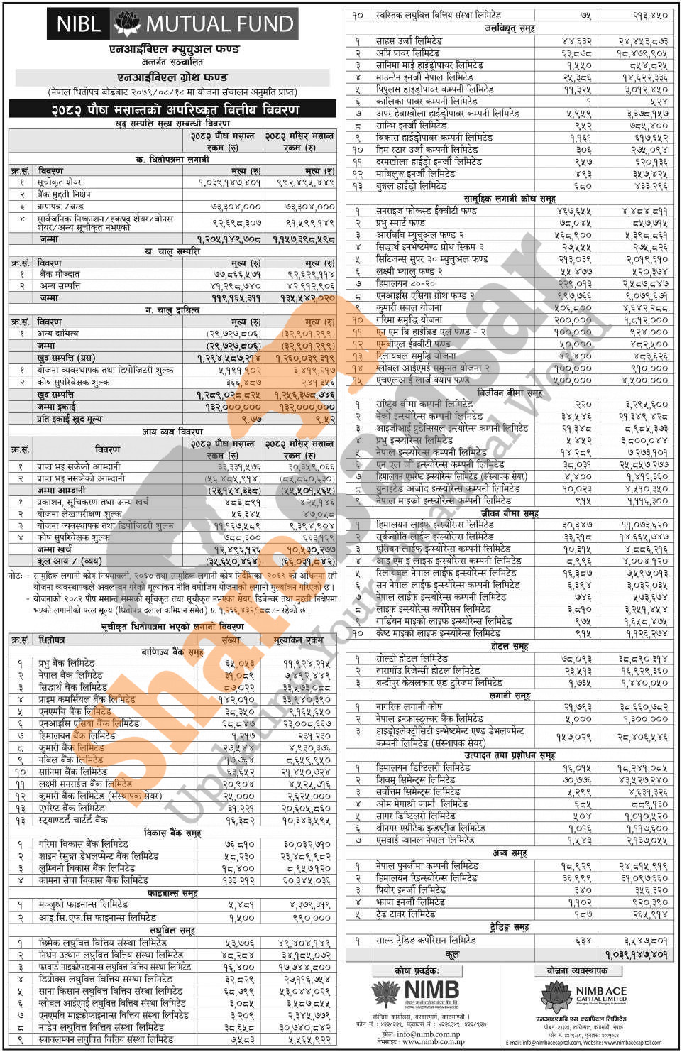 NIMB Ace Capital Limited has published “NIBL Growth Fund” Net Assets Value (NAV) till Poush, 2082.