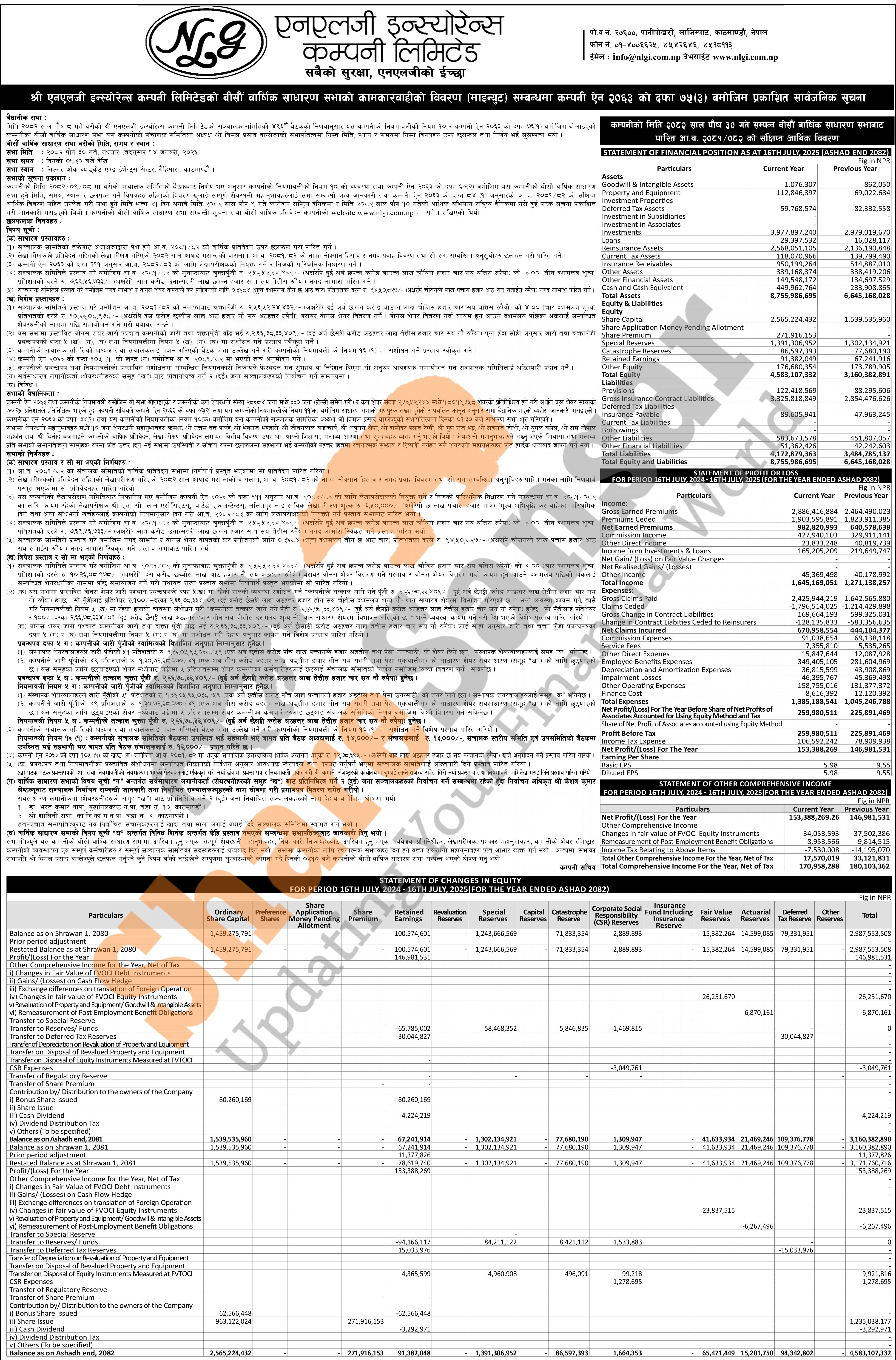 NLG Insurance Company Limited has published the minutes of its 20th AGM.