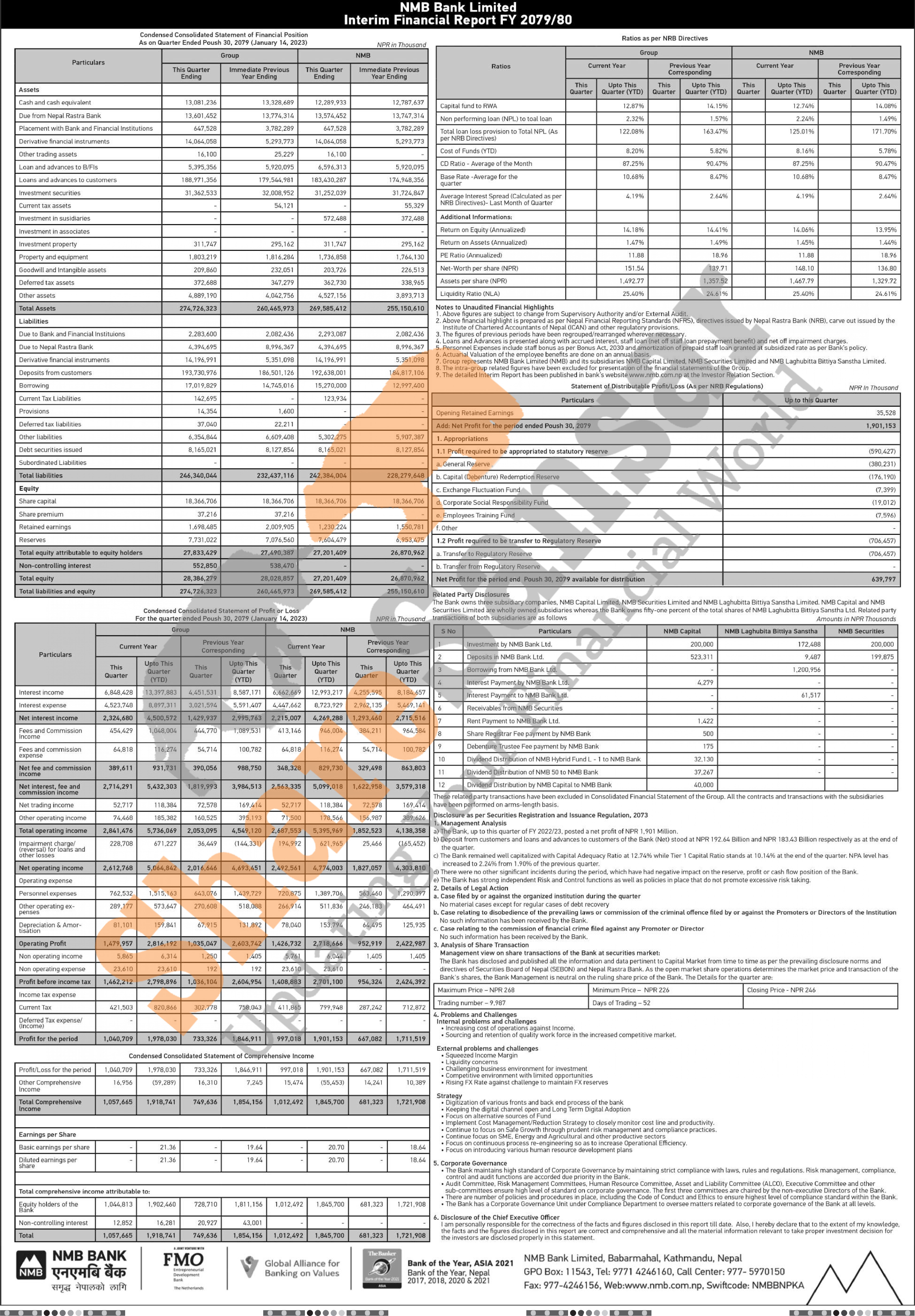 NMB Bank Limited has posted a net profit of Rs 1.90 billion and published its 2nd quarter company analysis of the fiscal year 2079/80.