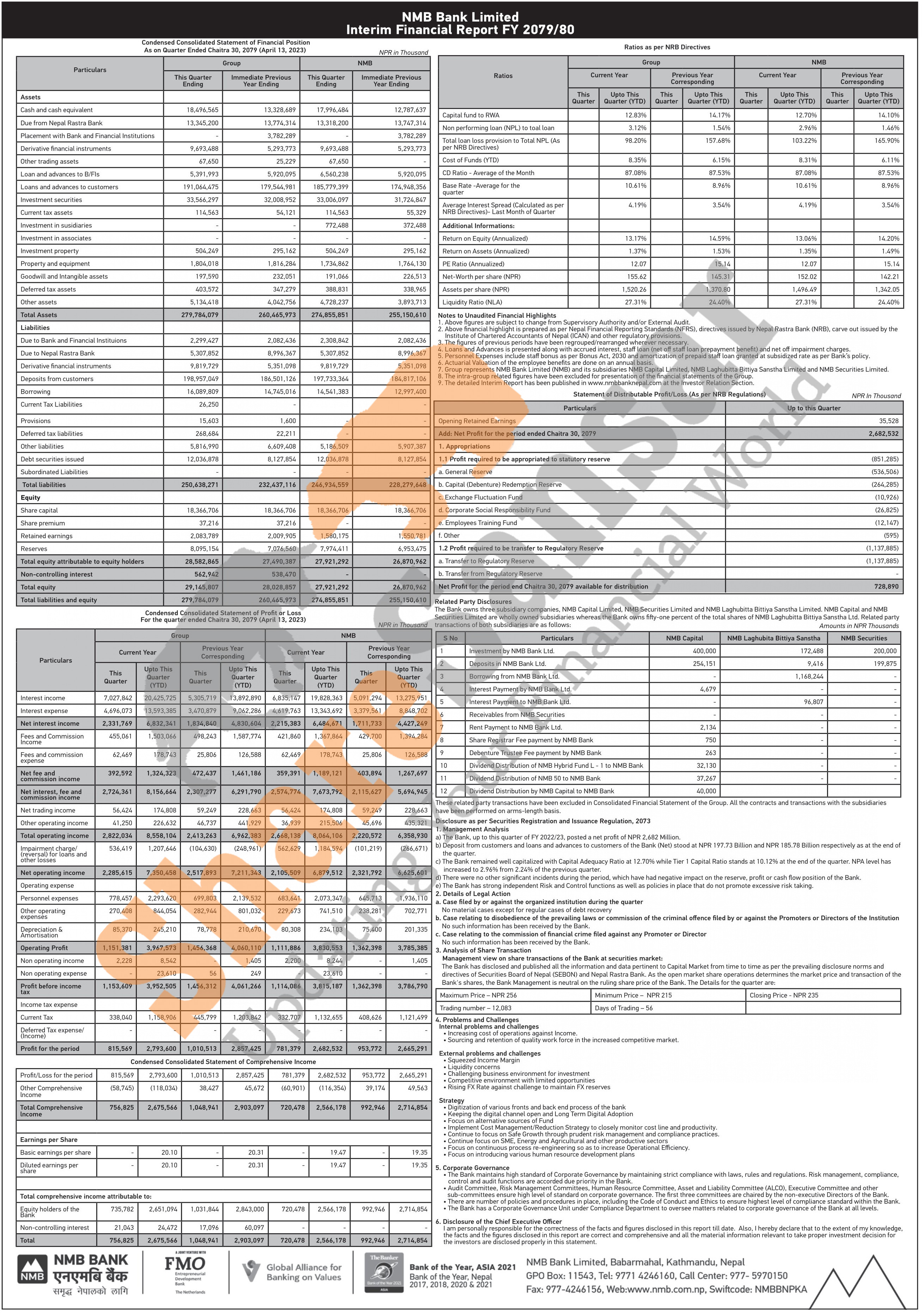 NMB Bank Limited has posted a net profit of Rs 2.68 billion and published its 3rd quarter company analysis of the fiscal year 2079/80.