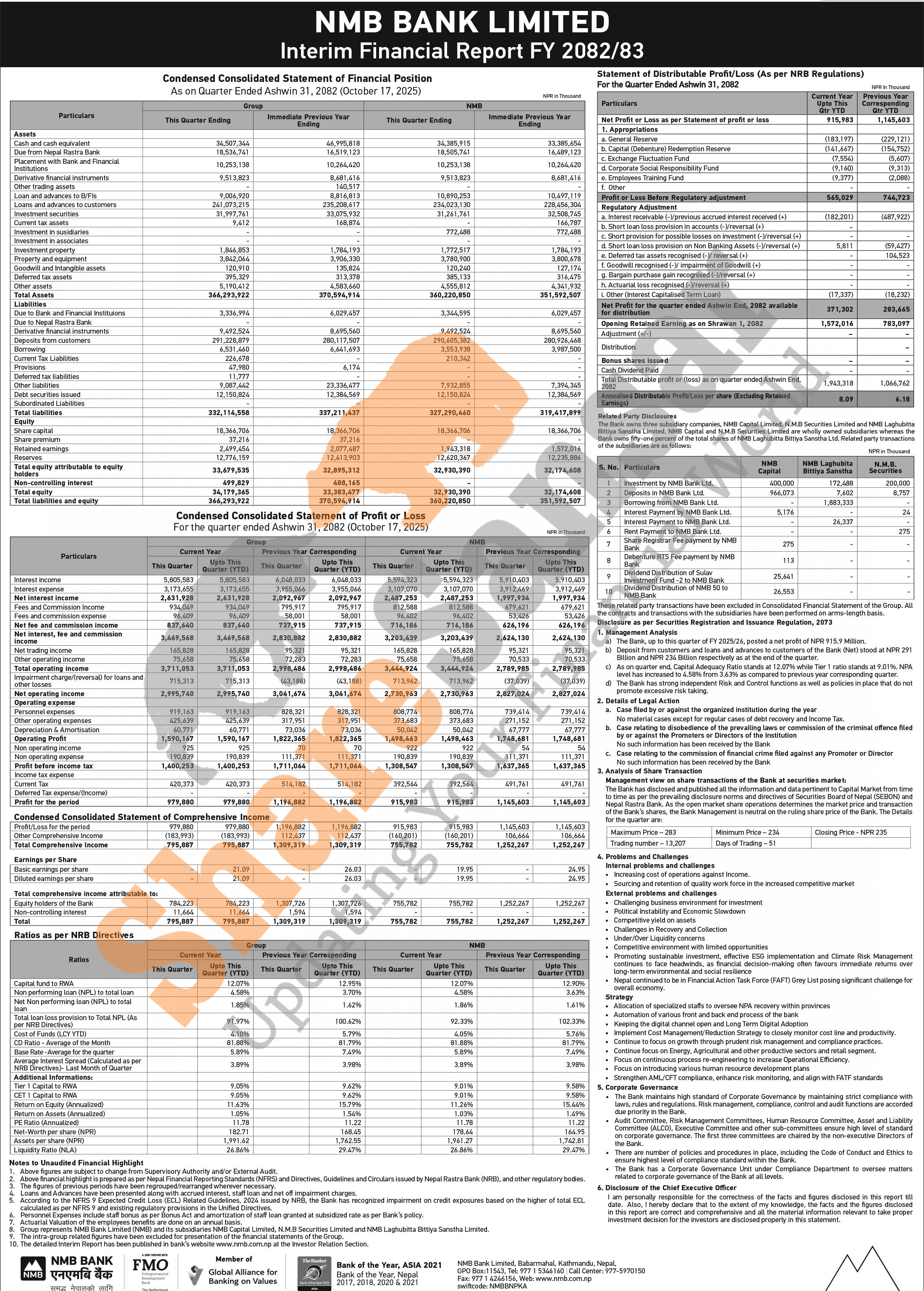 NMB Bank Limited has posted a net profit of Rs 915.98 million and published its 1st quarter company analysis of the fiscal year 2082/83.