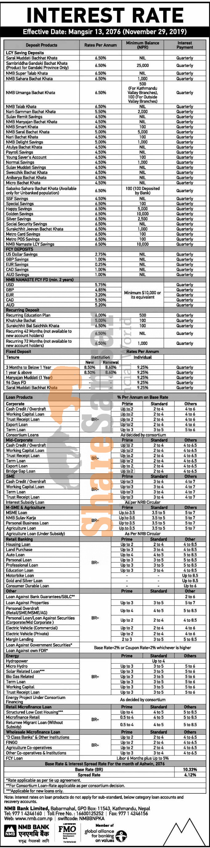 NMB Bank Limited has published a notice regarding new interest rate and its effective from 13th Mangsir, 2076.