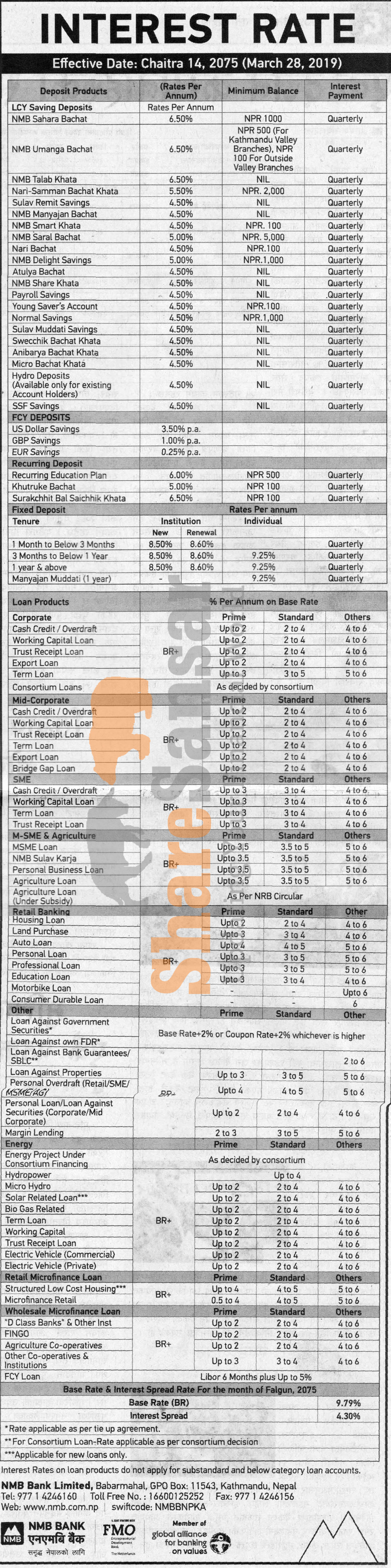 NMB Bank Limited has published a notice regarding new interest rate and its effective from 14th Chaitra, 2075.