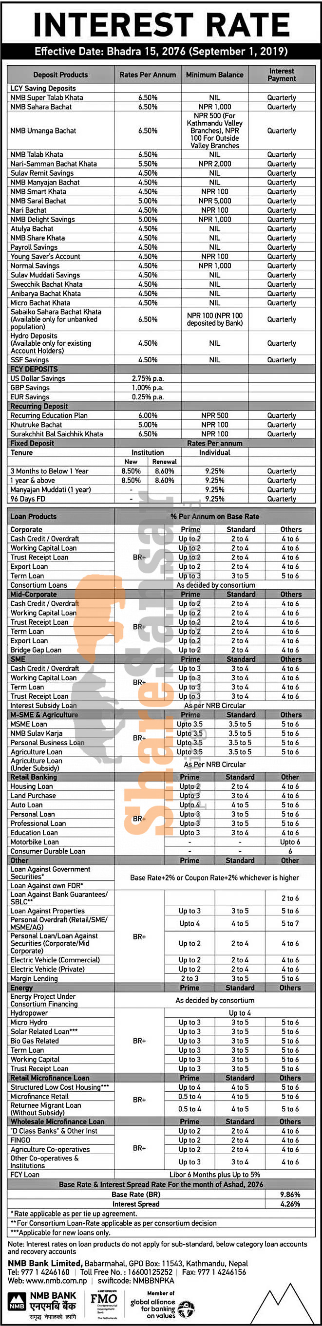 NMB Bank Limited has published a notice regarding new interest rate and its effective from 15th Bhadra, 2076.