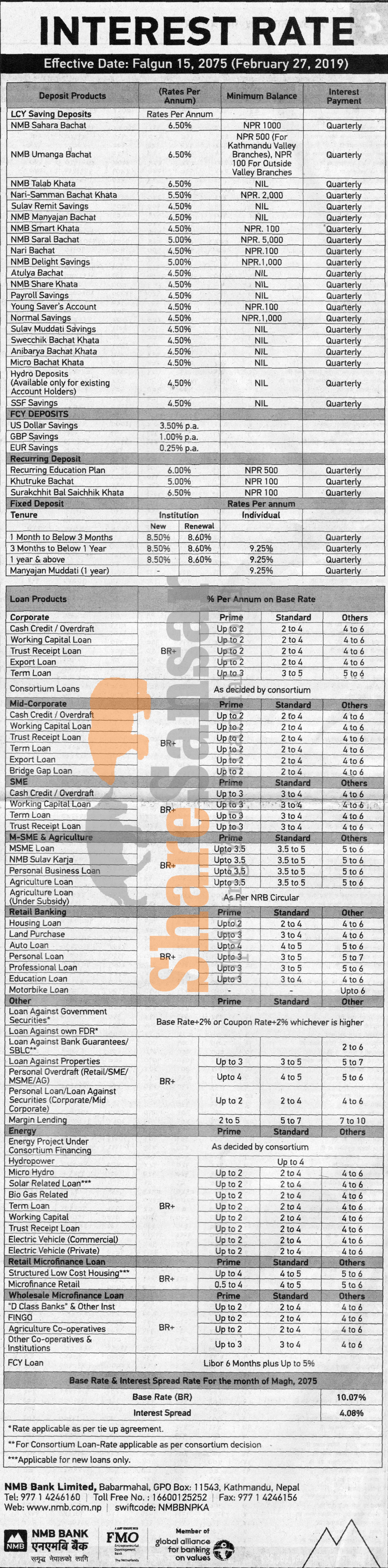 NMB Bank Limited has published a notice regarding new interest rate and its effective from 15th Falgun, 2075.