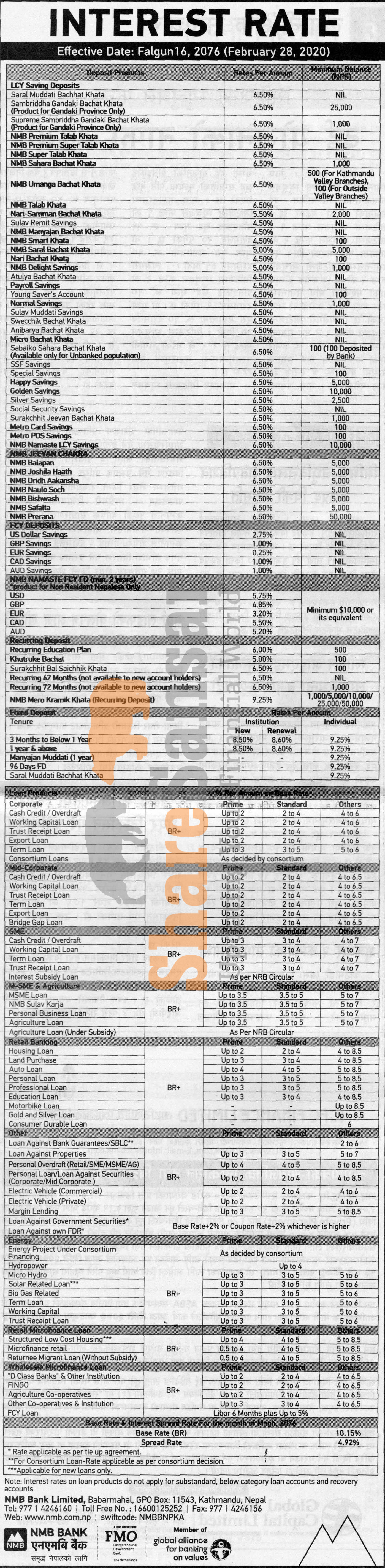 NMB Bank Limited has published a notice regarding new interest rate and its effective from 15th Falgun, 2076.