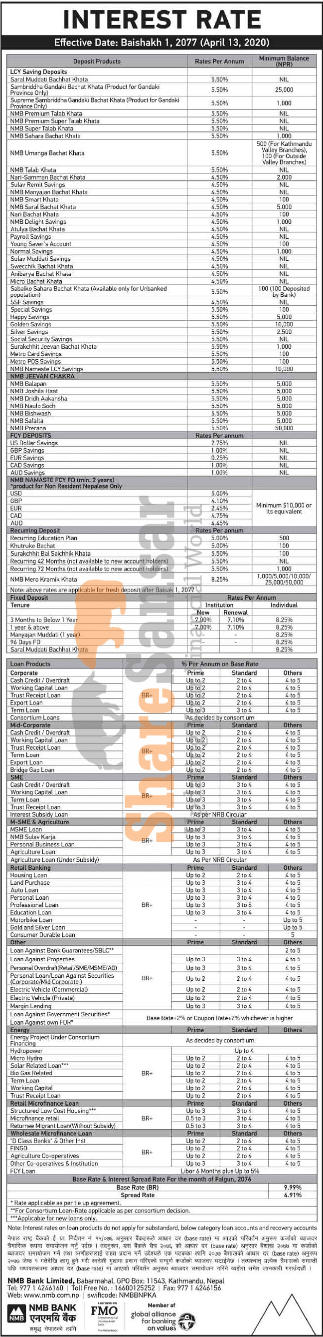 NMB Bank Limited has published a notice regarding new interest rate and its effective from 1st Baishakh, 2077.