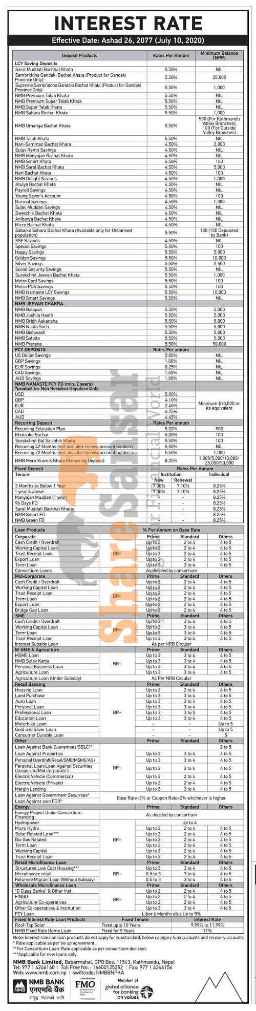 NMB Bank Limited has published a notice regarding the new interest rate and its effective from 26th Ashad, 2077.