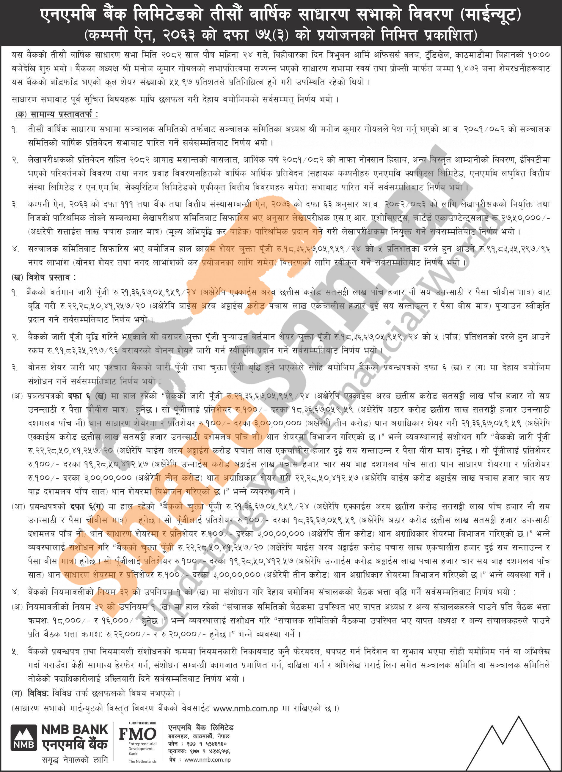 NMB Bank Limited has published the minutes of its 30th AGM.