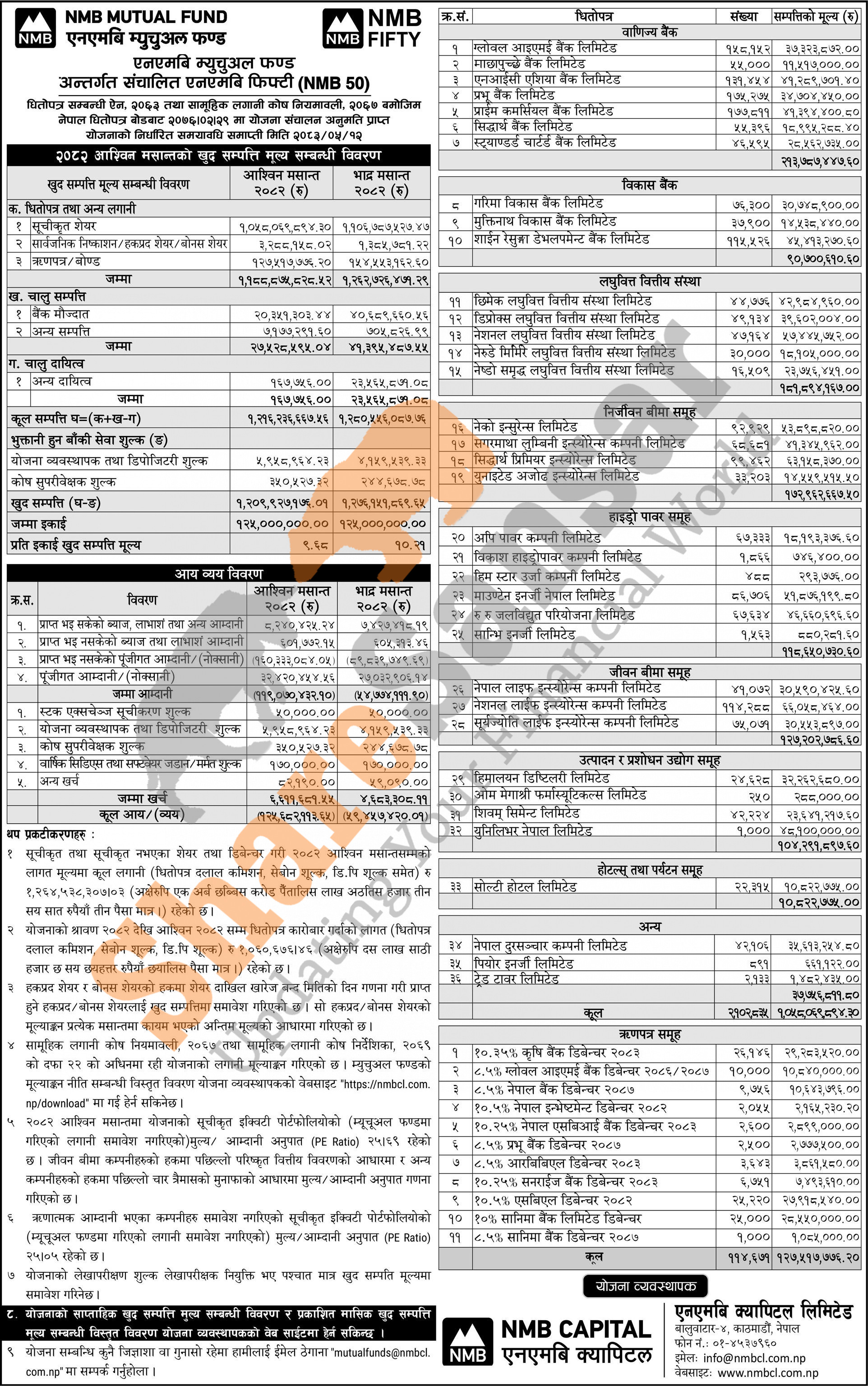 NMB Capital Limited has published "NMB 50" Net Assets Value (NAV) till Ashwin, 2082.