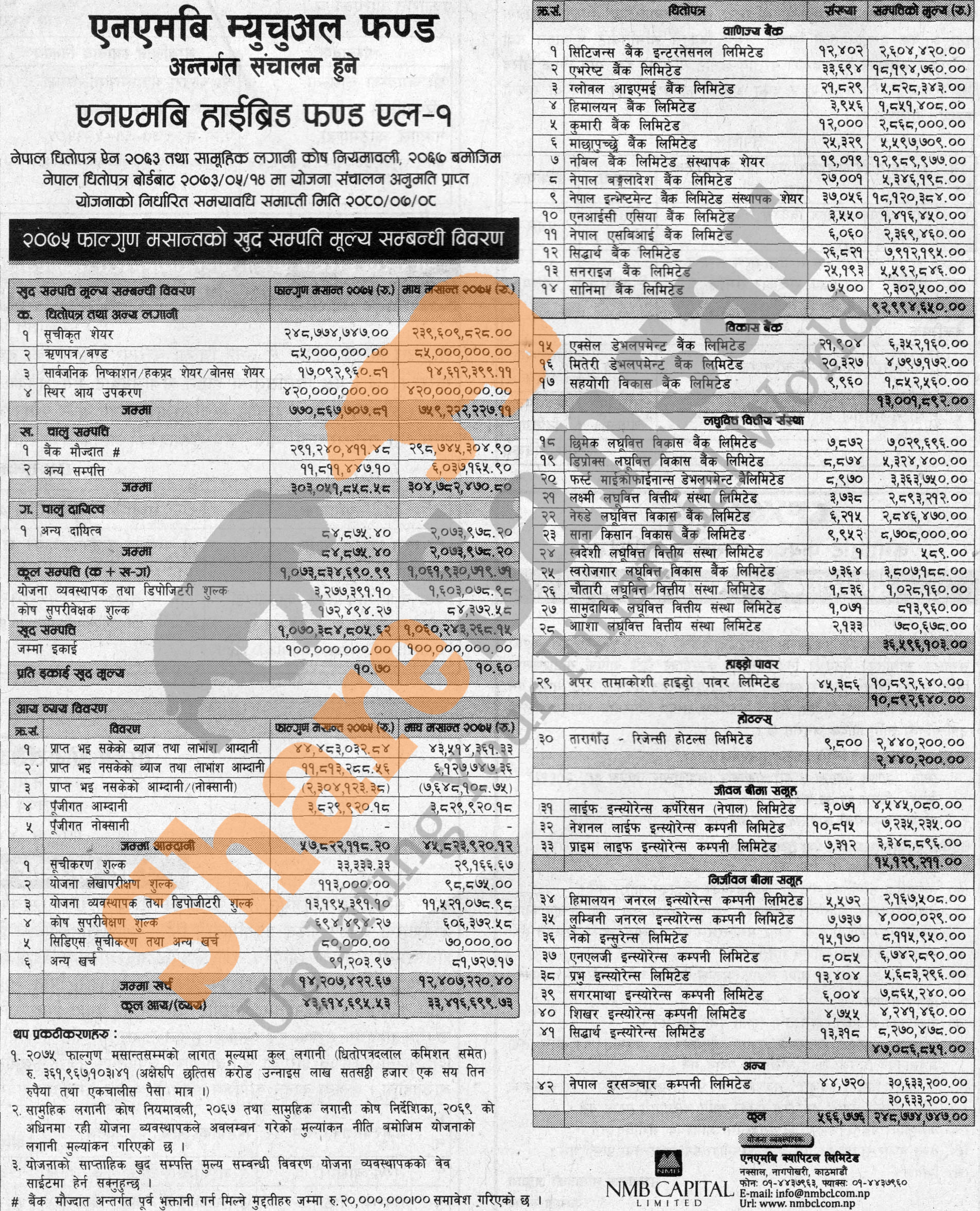 NMB Capital Limited has published (NMB Hybrid Fund L-1) Net Assets Value (NAV) till Falgun, 2075.