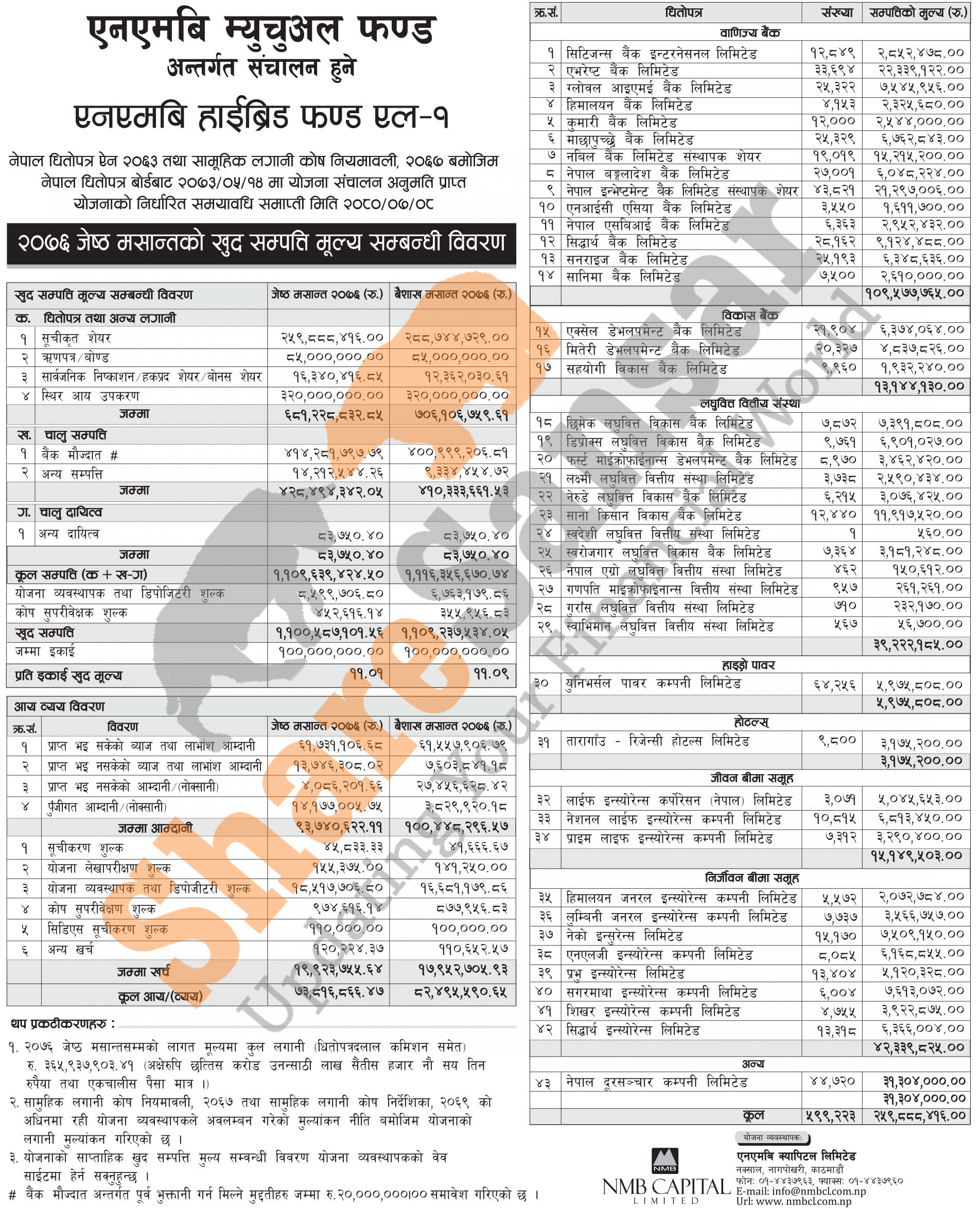 NMB Capital Limited has published (NMB Hybrid Fund L-1) Net Assets Value (NAV) till Jestha, 2076.