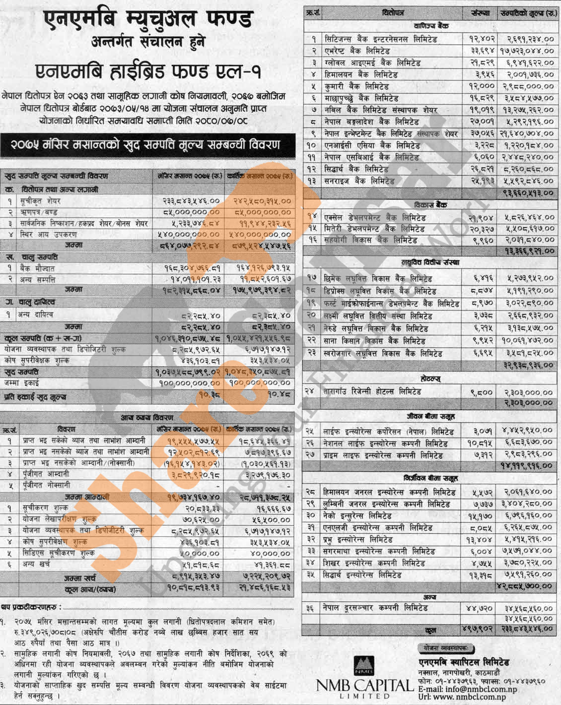 NMB Capital Limited has published (NMB Hybrid Fund L-1) Net Assets Value (NAV) till Mangsir, 2075.