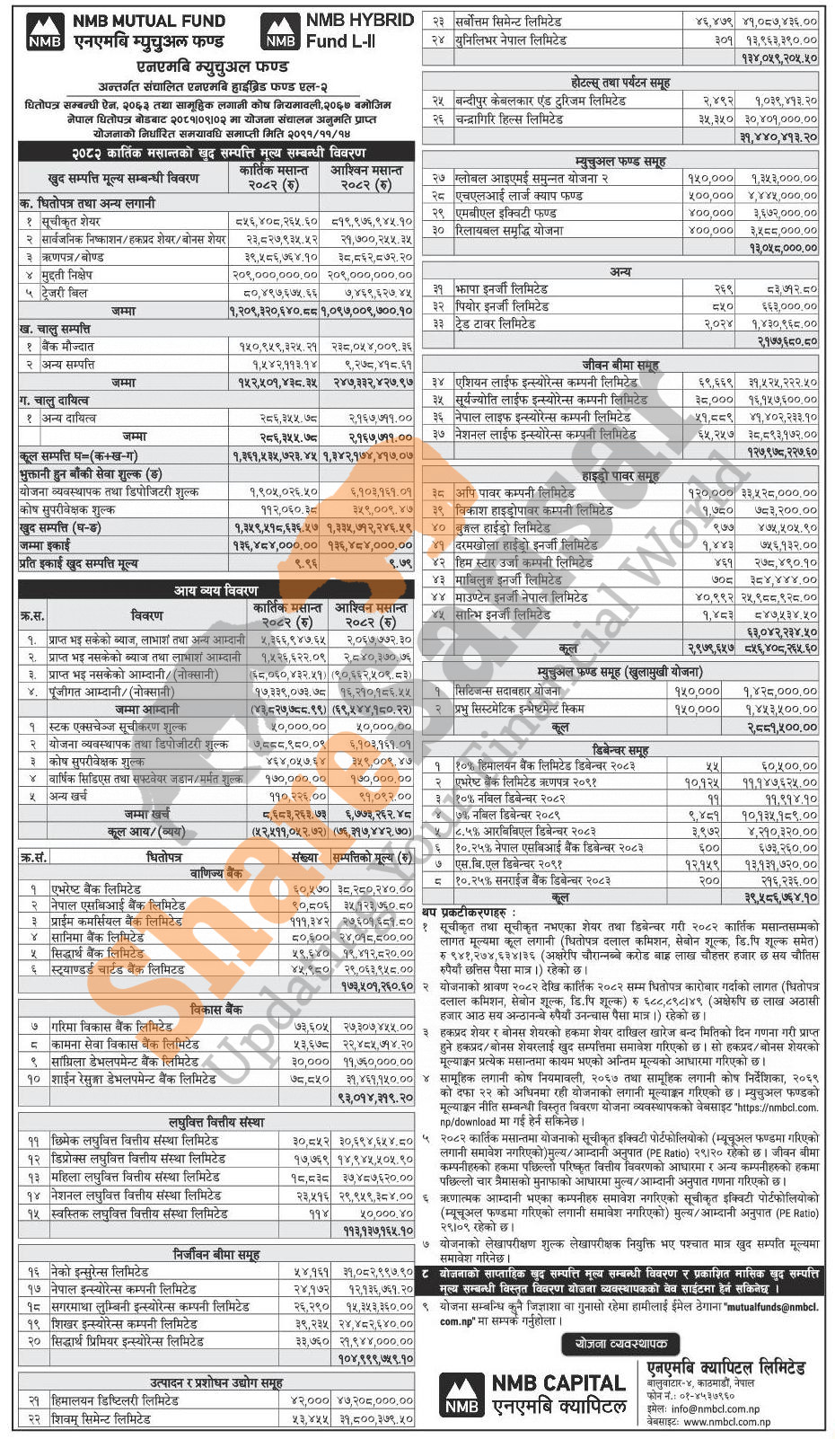 NMB Capital Limited has published "NMB Hybrid Fund L-II" Net Assets Value (NAV) till Kartik, 2082.