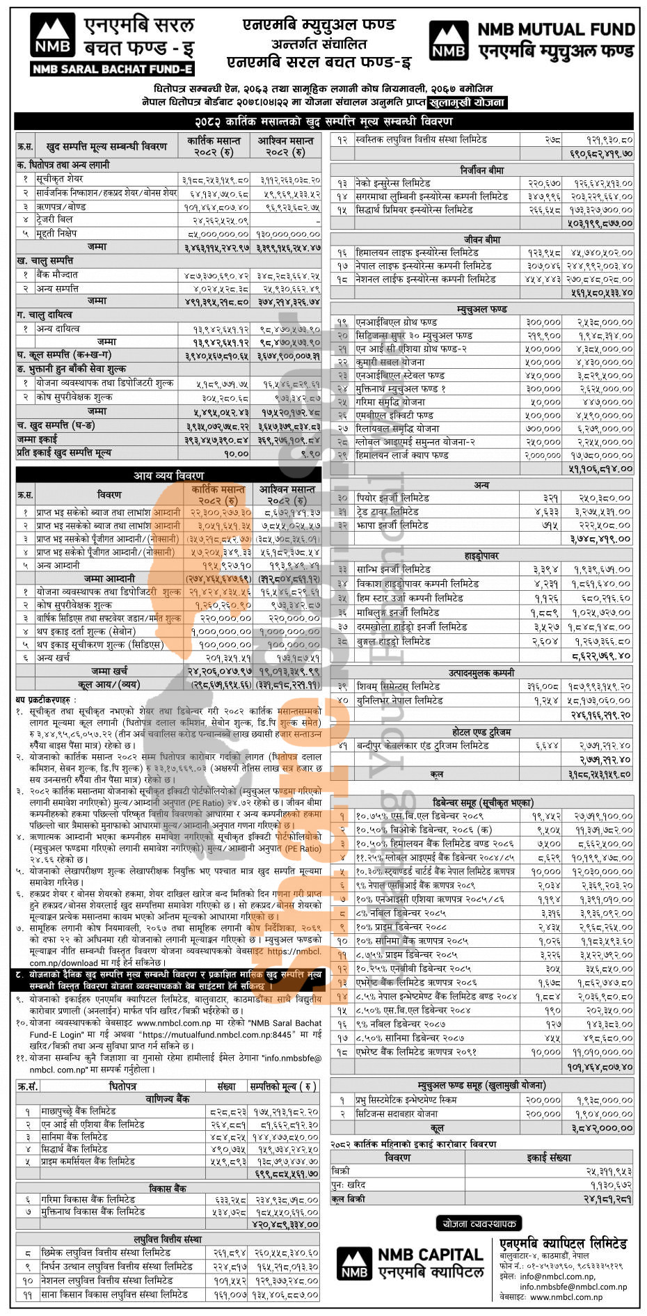NMB Capital Limited has published "NMB Saral Bachat Fund - E" Net Assets Value (NAV) till Kartik, 2082.