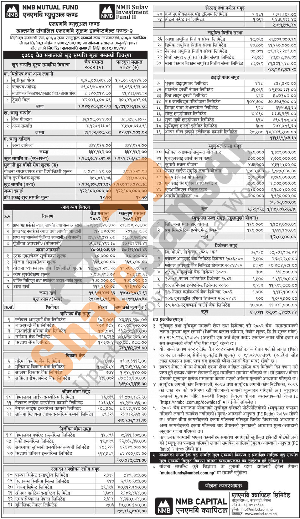 NMB Capital Limited has published "NMB Sulav Investment Fund - II" Net Assets Value (NAV) till Chaitra, 2082.