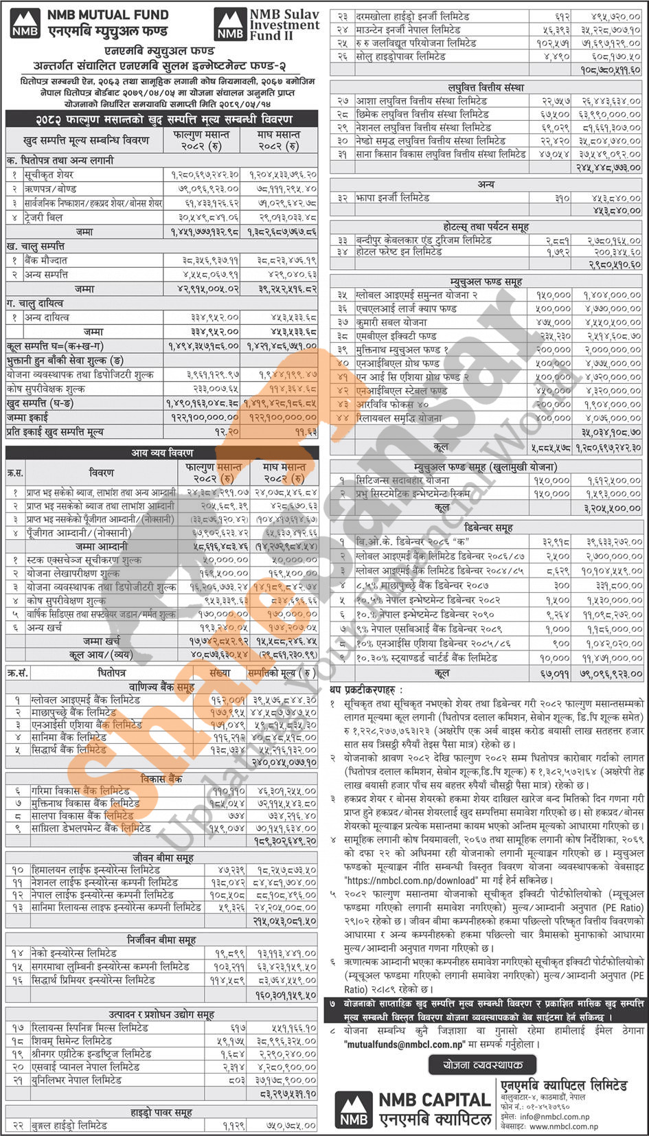 NMB Capital Limited has published "NMB Sulav Investment Fund - II" Net Assets Value (NAV) till Falgun, 2082.